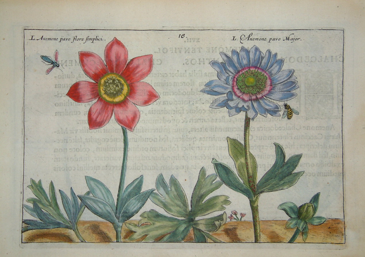 The ‘Hortus Floridus’ by Crispijn van de Passe (1594/5-1670) was ‘without question the most popular florilegium ever published’ (Oak Spring Flora). Although van de Passe produced a technically accurate work which became an indispensable reference work his artistic talents were also expressed well. Many of his plates were unique for the period in displaying the plants in their natural surroundings rather than floating on a blank page. He is also noted for introducing insect life and even the odd animal to his images. Van de Passe was the son of an engraver of the same name. Ref. Hunt (1958) 199; Nissen BBI (1966) 1494; ‘Oak Spring Flora’ no. 12.