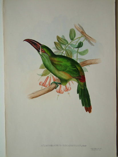 21 x 14 inches, original hand coloured lithograph. Plate 12, a toucan.
