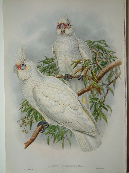 21 x 14 inches, original hand coloured lithograph. Plate 7, a cockatoo.