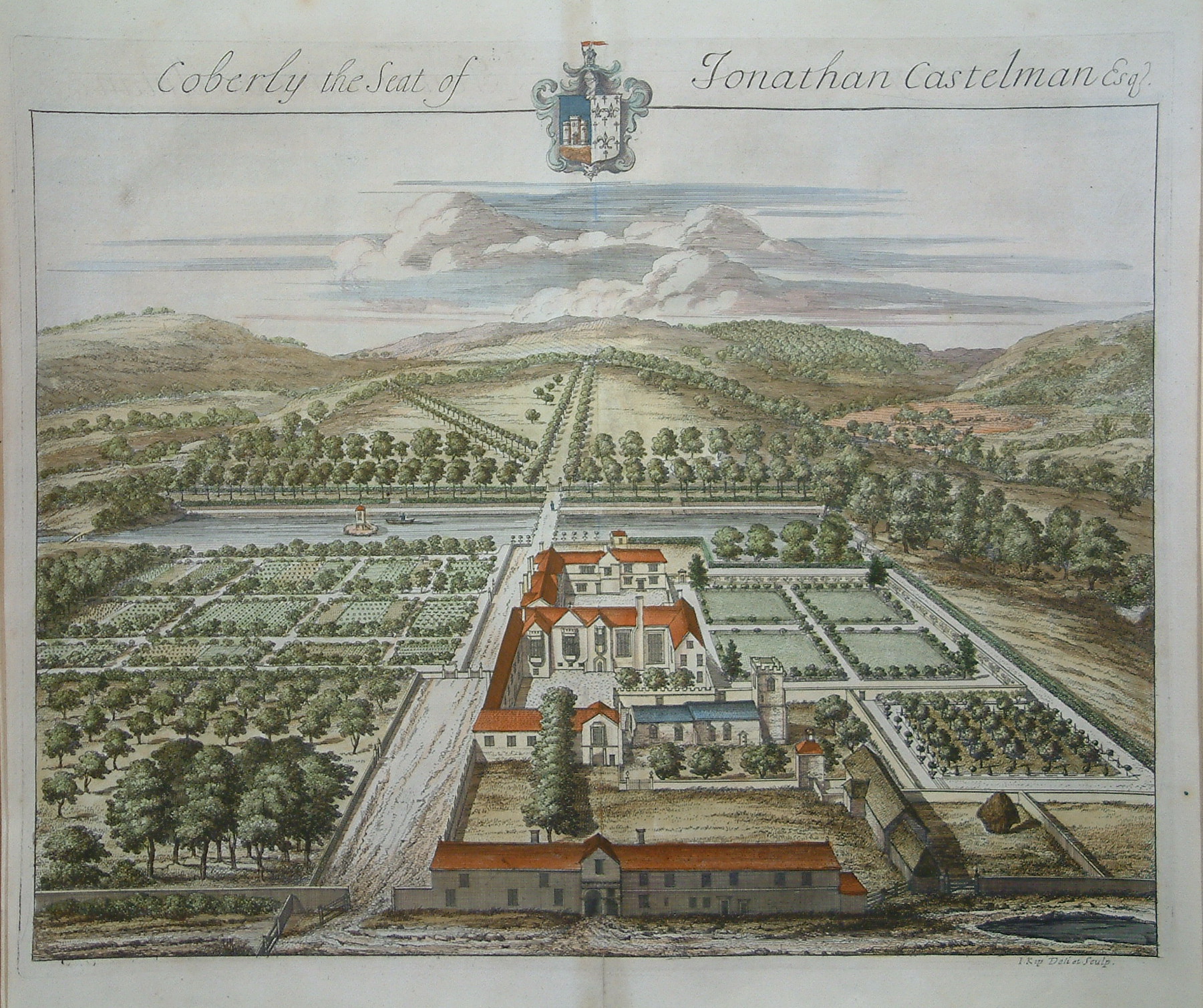 These classic engravings by Joannes Kip (1653-1722) illustrate Sir Robert Atkyns’ ‘Present State of Gloucestershire’ published in 1712. Atkyns (1647-1710) was a topographer and the son of the Chief Baron of the Exchequer. He was elected an MP for Gloucester in 1684. The superb birds-eye views are of country seats and estates and have become synonymous with the English country house. The book was published posthumously and nearly didn’t make it as many copies were destroyed in a fire at the printers in White Friars on 30 January 1712. Upcott (1968) I, p. 246.