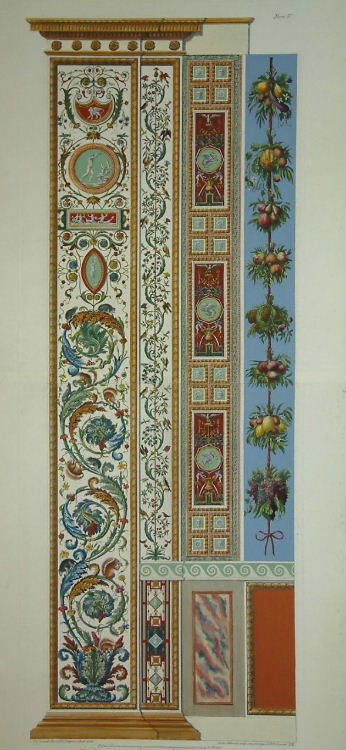 These classic engravings record the work of Raphael Sanzio da Urbino (1483-1520) in decorating the Loggie in the Vatican apartments between 1518-19 for Pope Leo X. This work entitled ‘Delle Loggie di Rafaele nel Vaticano’ was engraved by Giovanni Ottaviani (c.1734-1808) and Giovanni Volpato (1735-1803) and is remarkable for its size and the magnificent colouring found in contemporary-coloured examples. They were to have considerable influence on contemporary taste in the neo-classical period. A reduction was published in Paris 1787-90 in which two panels appear on each plate. They were beautifully engraved by J. Sticotti and published by Francois Chereau and Francois-Etienne Joubert. An edition was published in Rome around 1802. They were beautifully engraved by Carlo Lasinio under the direction of Rainaldi after the drawings of Camporesi. Brunet (1860-80) IV, pp. 1110-11; Berlin Cat. (1939) no. 4068 & 4070; ‘Universal Catalogue of Books on Art’ II p. 1689.
