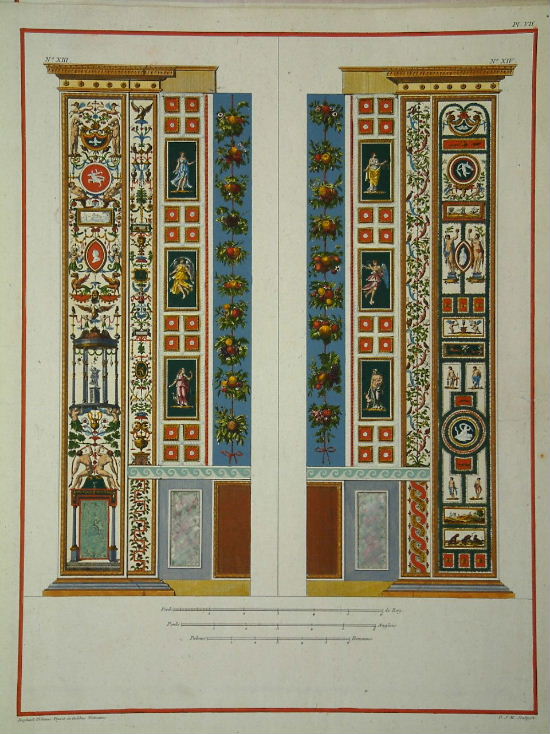 These classic engravings record the work of Raphael Sanzio da Urbino (1483-1520) in decorating the Loggie in the Vatican apartments between 1518-19 for Pope Leo X. This work entitled ‘Delle Loggie di Rafaele nel Vaticano’ was engraved by Giovanni Ottaviani (c.1734-1808) and Giovanni Volpato (1735-1803) and is remarkable for its size and the magnificent colouring found in contemporary-coloured examples. They were to have considerable influence on contemporary taste in the neo-classical period. A reduction was published in Paris 1787-90 in which two panels appear on each plate. They were beautifully engraved by J. Sticotti and published by Francois Chereau and Francois-Etienne Joubert. An edition was published in Rome around 1802. They were beautifully engraved by Carlo Lasinio under the direction of Rainaldi after the drawings of Camporesi. Brunet (1860-80) IV, pp. 1110-11; Berlin Cat. (1939) no. 4068 & 4070; ‘Universal Catalogue of Books on Art’ II p. 1689.