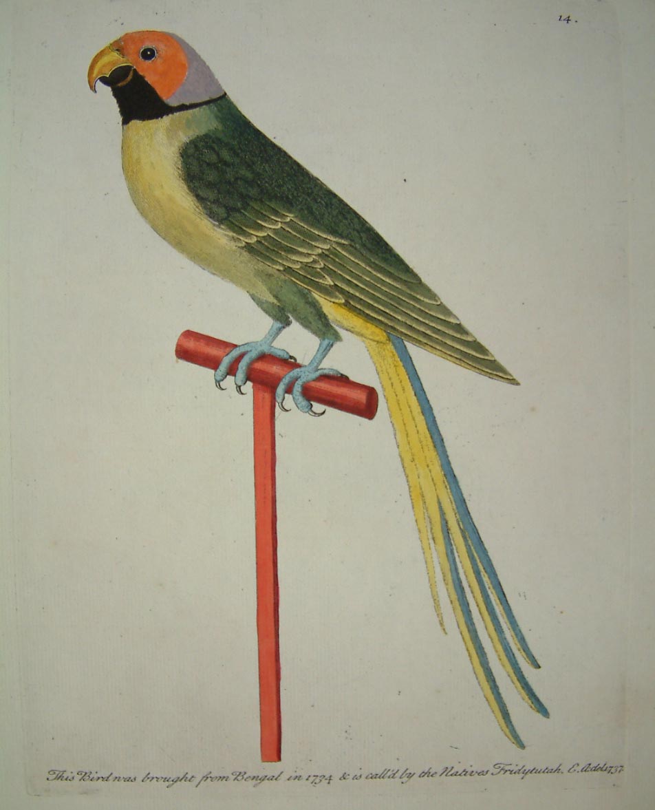 Eleazar Albin’s ‘Natural History of Birds’ is the first colour plate bird book to be printed. Mark Catesby’s ‘Natural History’ began publication in the same year but that work was not completed until 1747 and it was not purely a bird book. Little is known about Albin; he was a teacher of watercolour and drawing. He admits that he was drawn to natural history by the rich and vibrant colours found in birds, plants and insects. Anker (1979) 4; Fine Bird Books (1990) 54; Nissen (1976) IVB 14.