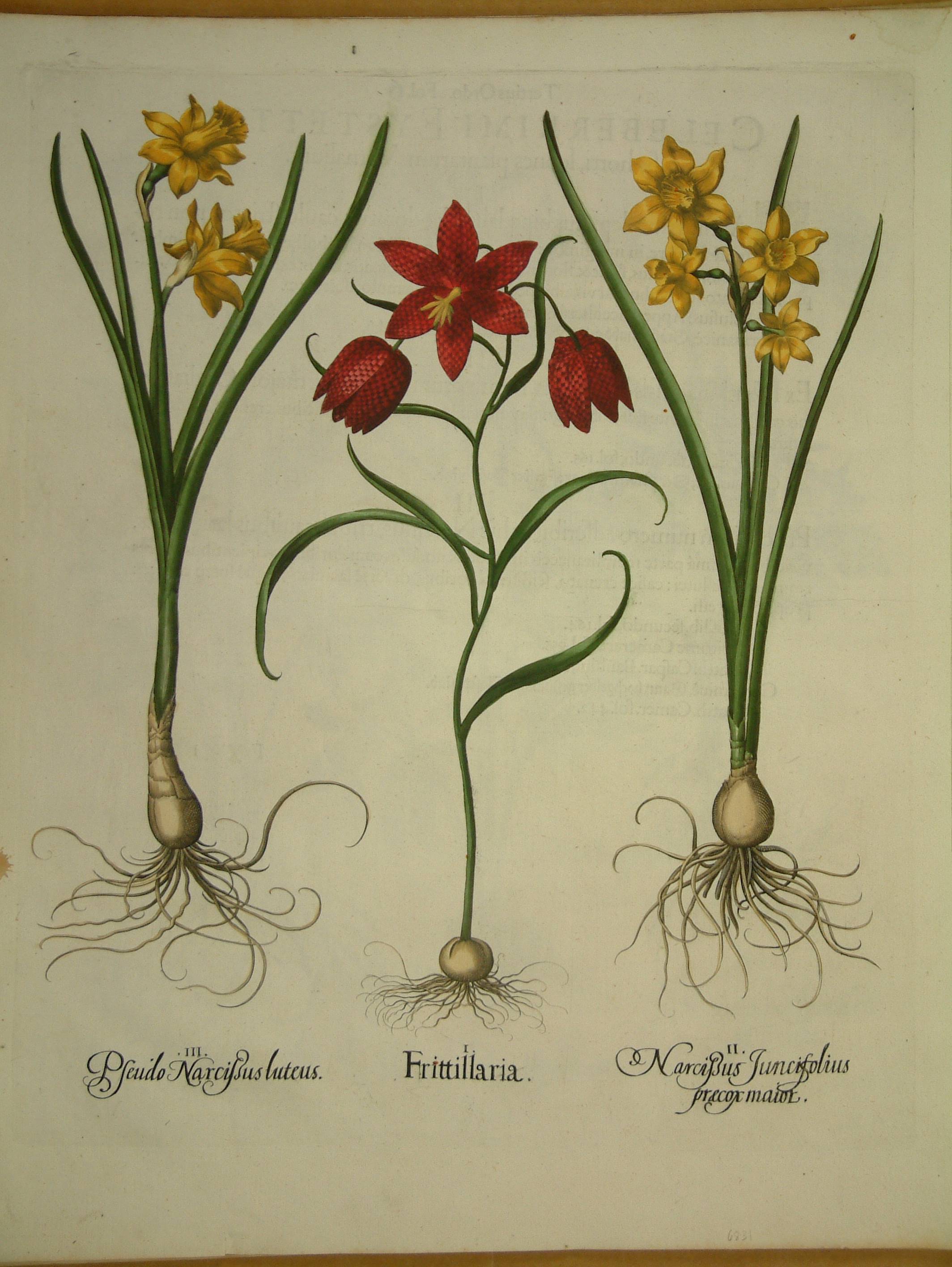 Basilius Besler’s ‘Hortus Eystettensis’ is generally considered to be one of the most important and most beautiful florilegia ever published. It was commissioned by the Prince-Bishop Johann Conrad von Gemmingen in 1606, whose castle overlooked Eichstatt, a town to the south of Nuremberg. The garden was begun by Joachim Camerarius the younger (1534-98) in 1596 and was completed by Basilius Besler, a pharmacist from Nuremberg who also owned a fine garden and a collection of scientific curiosities. Within a few years the gardens of Eichstatt had become one of the most renowned in Europe.