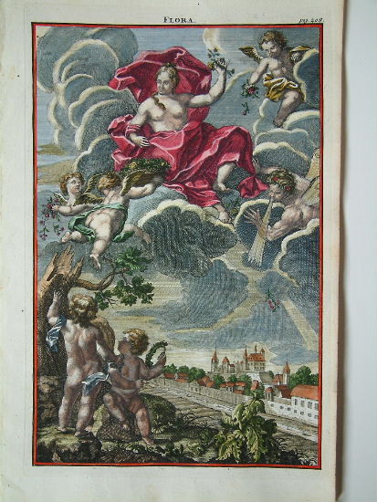 Johann Christoph Volkamer (1644-1720) was the son of Johann Georg Volkamer (1616-1693), physician, botanist, and gardener, who visited Italy and studied at Padua from 1638 to 1641, soon after the establishment of the botanic garden there. When he returned to Nuremberg, he built a large greenhouse in his garden at Gostenhof, the house and garden later inherited by his oldest son, Johann Christoph, who shared his father’s love of both Italy and gardening. During his youth he spent several years in Italy visiting gardens to study the endless varieties of citrus fruit he saw. The first part of the ‘Nurnbergische Hesperides’ was published in 1708 was a great success, the second volume came out in 1714. The views of Italian houses and gardens in this volume are mostly taken from the country round Venice, the Brenta, the Euganean hills and those near Bologna. The fruit and gardens in most of the plates spherical oranges, lemons, and citrons drifting like eccentric balloons above miniature landscapes make pleasingly surreal compositions. Its genesis is reflected in two albums of Volkamer’s drawings for it in the Germanisches Nationalmuseum, Nuremberg. About two hundred of these drawings have survived, and others were probably destroyed during World War II with parts of the family archive. Dunthorne (1938) 323; Hunt (1958) 420; Nissen BBI (1966) 2076; ‘Oak Spring Pomona’ (1990) pp.191-9. Pritzel (1871-77) 9848-9.