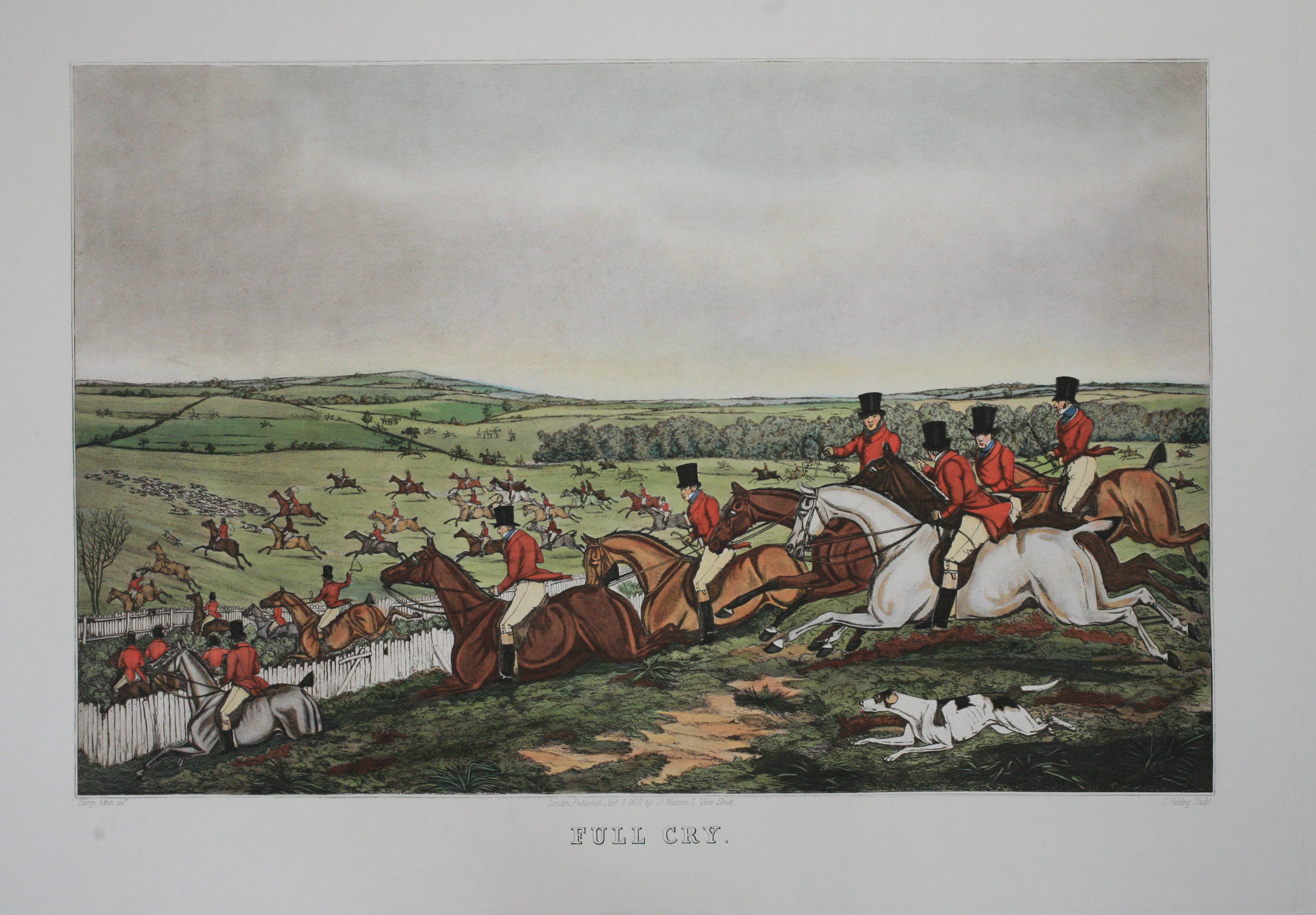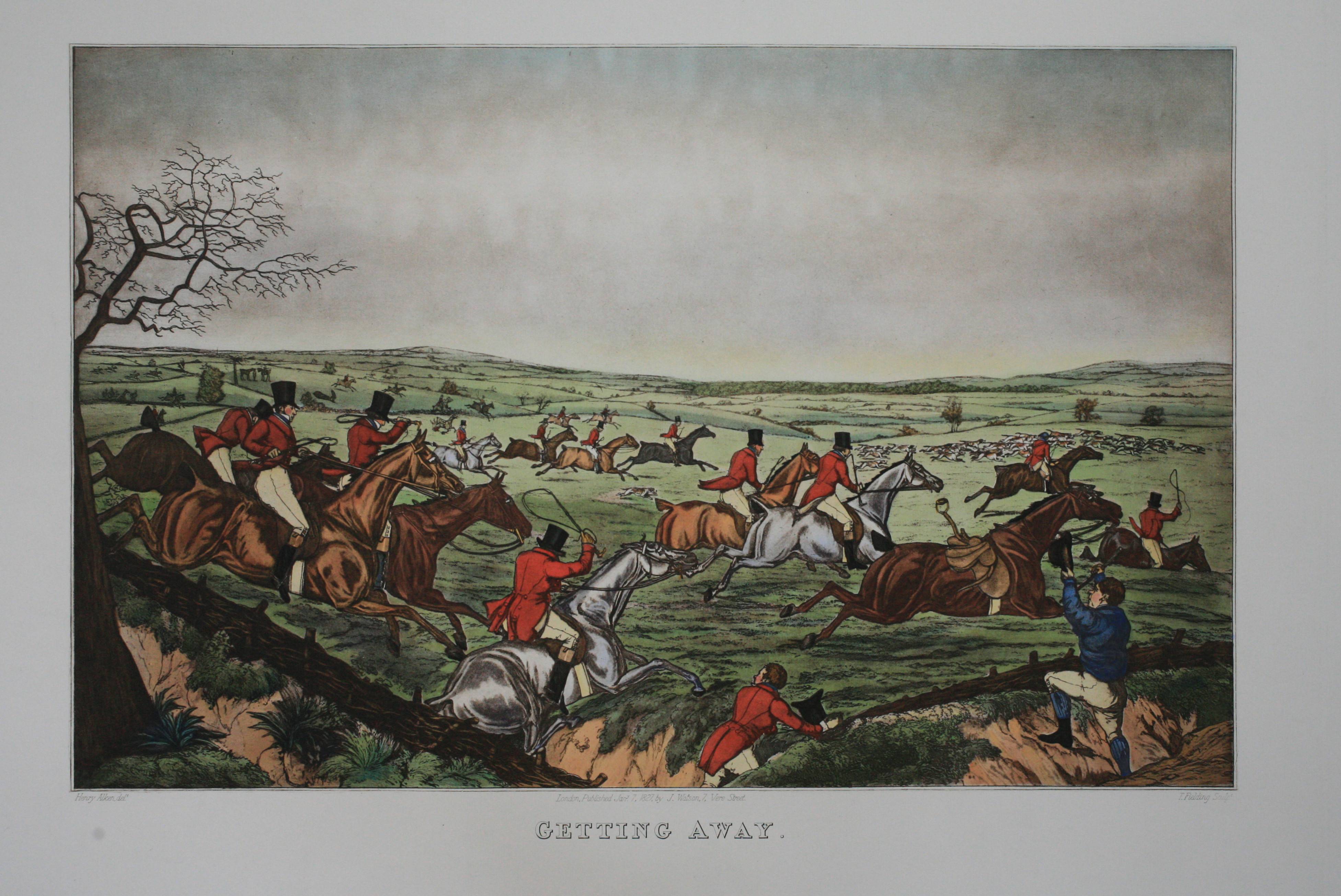 15.5 x 21 inches each, a pair of copperplate restrikes of fox hunting by Henry Alken & T. Fielding.