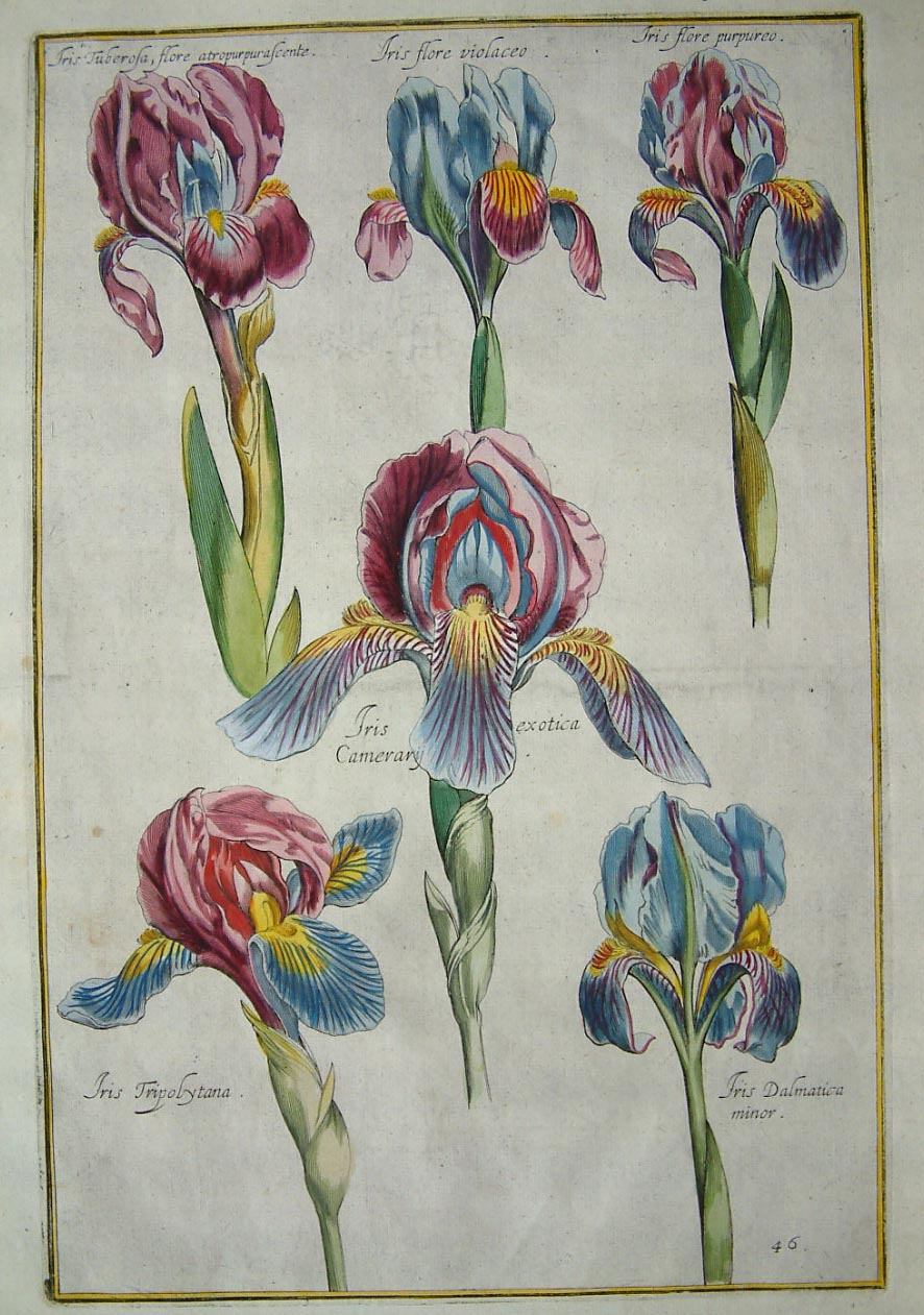 The ‘Theatrum Florae’ by Daniel Rabel (1578-1637) was printed in Paris in 1622 by Nicolas de Mathoniere. Published anonymously, it was an immediate success, and further editions were printed in 1627 and 1633. It was only in the third edition that the name of the author, Daniel Rabel, finally appeared. Confirmation of his authorship can be found in an album of botanical paintings signed by Rabel and now in the Bibliotheque Nationale; it contains drawings that formed the basis for some of the engravings in ‘Theatrum Florae’. Rabel was a man of many talents; a painter, engraver, portraitist, designer of theatre sets for ballets, creator of garden ornaments and plant-beds, engineer, and finally painter, as he signed himself in the album. However, although Rabel was responsible for the preparatory drawings, it is not certain that he executed the engravings. Rabel was born in Paris; his father, Jean, was also a painter. Rabel seems to have been the very first artist of natural subjects to enjoy the patronage of Gaston, duc d’Orleans, a younger brother of Louis XIII. This prince took a lively interest in the natural sciences and in the cultivation of flowers, pastimes he indulged in the splendid gardens of his chateau at Blois. Paintings on natural themes became fashionable in France during this period in large part due to his encouragement. Gaston commissioned Rabel to paint several vellums that came to form the original nucleus of the celebrated royal collection of botanical paintings today conserved in the Museum National d’Histoire Naturelle, Paris, a collection to which Nicolas Robert also contributed a few decades later. Active though he was in many different areas, Rabel’s fame rests on his botanical and floral paintings, which inspired eulogies from many of his contemporaries. Rabel also designed the titlepage and frontispiece, with their sophisticated allegorical imagery. Blunt (1950) pp. 107-08; cf. (1958) Hunt 212; Nissen BBI (1966) 1575; ‘Oak Spring Flora’ (1997) pp. 69-73.