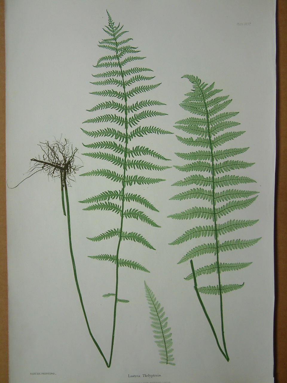 21.5 x 14 inches, hand coloured nature printed plate.