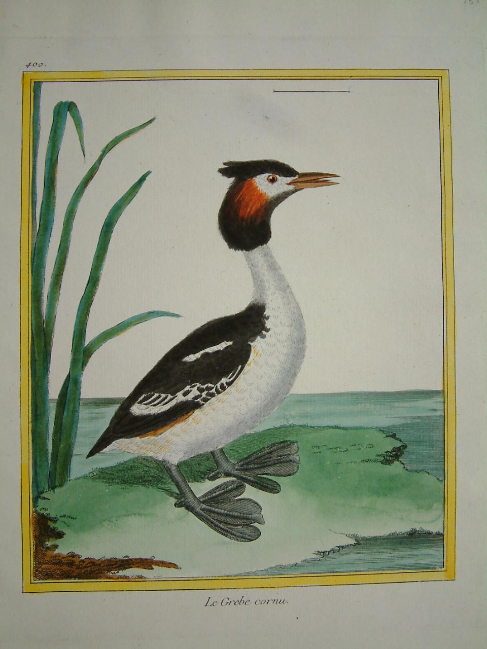 The ‘Histoire Naturelle des Oiseaux’ by Comte de Georges Louis Leclerc Buffon (1707-88) ranks as one of the most important bird books of the era due not in the least to the fact that it was the most ambitious and comprehensive at the time. The text to the work was drawn from the nine ornithological volumes of Buffon’s ‘Histoire Naturelle Générale et Particulière’ published 1749-1804. A larger and fully coloured version was called for and for this Francois Nicolas Martinet (c.1725-c.1804) supplied the plates supervised by Louis-Jean-Marie Daubenton (1716-1800). They are admired for their beauty and colour. Anker (1979) 76; Fine Bird Books (1990) 63; Nissen IVB (1976) 158.