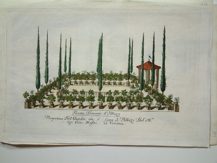 Johann Christoph Volkamer (1644-1720) was the son of Johann Georg Volkamer (1616-1693), physician, botanist, and gardener, who visited Italy and studied at Padua from 1638 to 1641, soon after the establishment of the botanic garden there. When he returned to Nuremberg, he built a large greenhouse in his garden at Gostenhof, the house and garden later inherited by his oldest son, Johann Christoph, who shared his father’s love of both Italy and gardening. During his youth he spent several years in Italy visiting gardens to study the endless varieties of citrus fruit he saw. The first part of the ‘Nurnbergische Hesperides’ was published in 1708 was a great success, the second volume came out in 1714. The views of Italian houses and gardens in this volume are mostly taken from the country round Venice, the Brenta, the Euganean hills and those near Bologna. The fruit and gardens in most of the plates spherical oranges, lemons, and citrons drifting like eccentric balloons above miniature landscapes make pleasingly surreal compositions. Its genesis is reflected in two albums of Volkamer’s drawings for it in the Germanisches Nationalmuseum, Nuremberg. About two hundred of these drawings have survived, and others were probably destroyed during World War II with parts of the family archive. Dunthorne (1938) 323; Hunt (1958) 420; Nissen BBI (1966) 2076; ‘Oak Spring Pomona’ (1990) pp.191-9. Pritzel (1871-77) 9848-9.