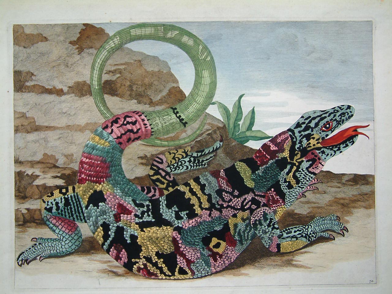 Maria Sibylla Merian (1647-1717) is most famous for two published works, the ‘Dissertatio de Generatione et Metamorphosibus Insectorum Surinamensium’ first published in 1705 and ‘De Europische Insecten’ of 1730, both published in Amsterdam. Maria was the daughter of Matthias Merian (1593-1650) a noted engraver and publisher. She devoted her life to the study of insects and their metamorphoses. Noting the fascinating insects returning from the Dutch colony in South America, she set sail with her daughter Dorothea in 1699 for Surinam where she remained until 1701. Her work was the first to show the European public the beauty and wealth of the insect life in the region. The various stages of caterpillar and butterfly are all shown amongst native flora and fruiting plants. The daughter Maria returned to Surinam to complete with work which was expanded with 12 further plates and published two years after her mother’s death in 1719. A third edition appeared in 1726. Dunthorne (1938) 205; ‘Great Flower Books’ (1956) p. 67; Hunt (1958) 467; Landwehr (1976) 131; Nissen (1966) 1341.