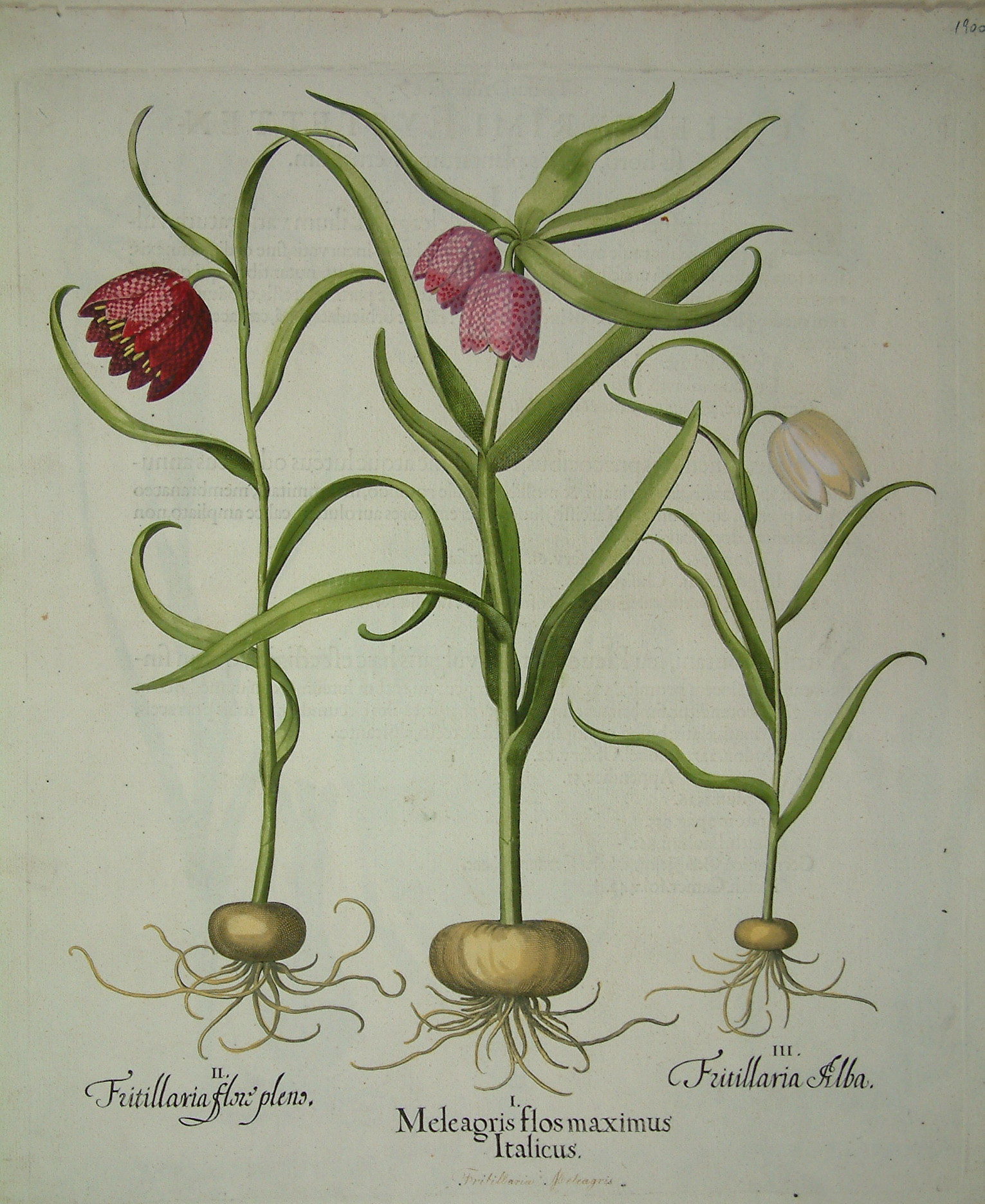 c. 18.5 x 15.5 inches, modern gouache colour, copper plate engraving. Plate 57. Fritillaria.