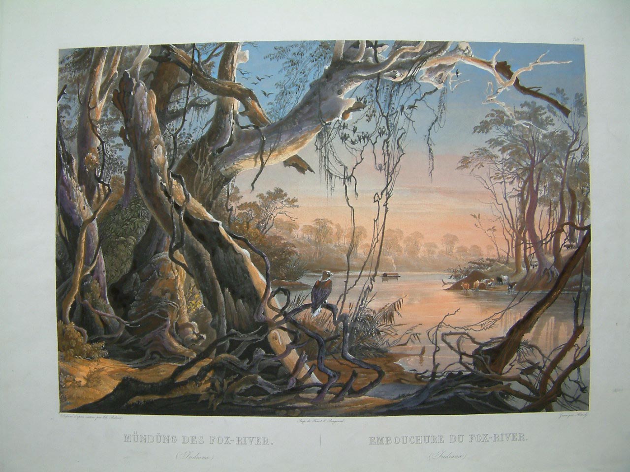 This is undoubtedly the finest plate book on Native American Indians ever published. The artist Karl Bodmer (1809-93) went on the expedition of Prince Maximilian to the Plains of North America. They travelled up the Missouri River from St. Louis passing the forts of the American Fur Company. The Sioux were one of the first they encountered recording their ceremonial dances. They continued by steamer to Fort Clark studying along the way the life of the Mandan, Mintari and Crow tribes. At Fort Union they encountered the Cree and Assiniboin. This was the main base of the American Fur Company. They then proceeded through the geological beauty of the next section of the Missouri to Fort Mackenzie in present day Montana, where they spent a month building relationships with the fearsome Blackfoot tribe. As winter was setting in this was their turning point and the return journey was made downstream. The finished prints accompanied the text of Maximilian and was published as ‘Reise in das Innere Nord-America’. The quality of the engraving and the realism of the individual portraits are praised to the highest degree. Abbey ‘Travel’ (1956) 615; Howes (1962) M443a; Sabin (1868-1936) 47015; Wagner-Camp (1982) 76.2.