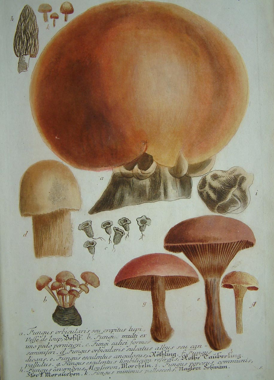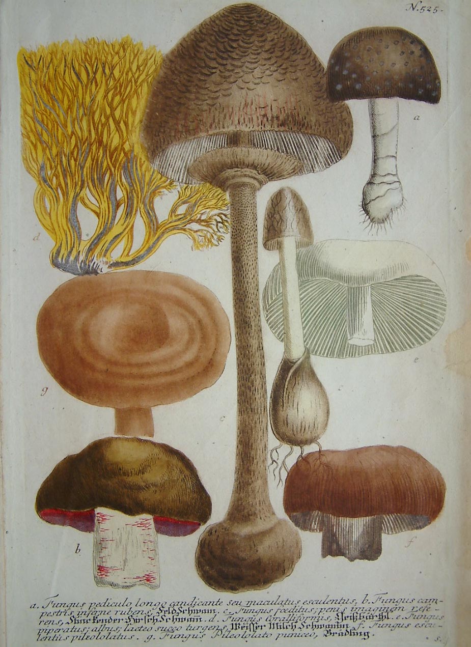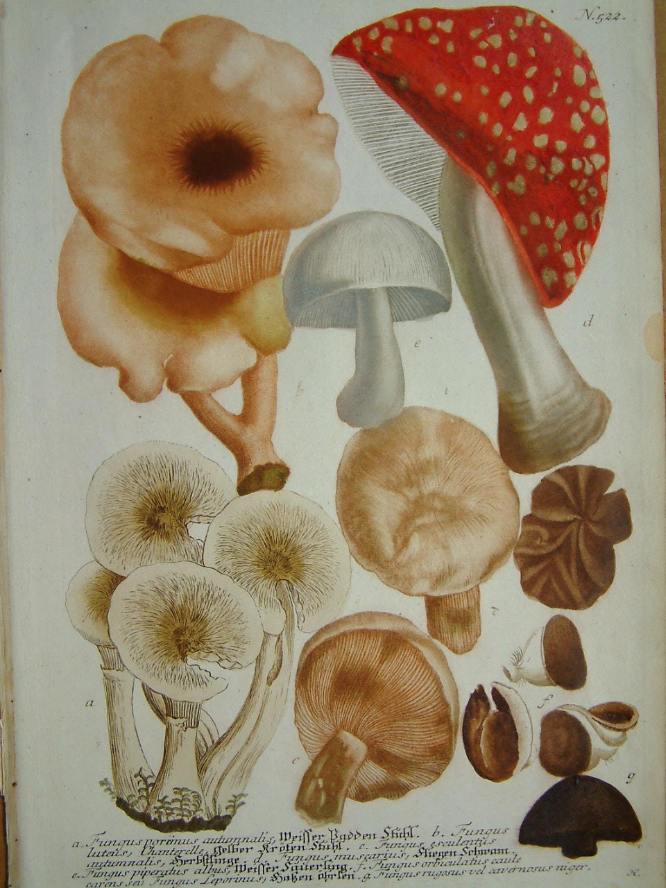 The first botanical book to use colour-printed mezzotint successfully (Hunt). It also contains the very first botanical illustrations by the great Georg Dionysius Ehret (1708-70), although they are unsigned. His work for Johann Wilhelm Weinmann (1683-1741) formed his apprenticeship and for it he was paid a pittance. He contributed several hundred drawings and afterwards the two men fell out. It is another reason possibly for the lack on any reference to Ehret in the ‘Phytanhoza Iconographia’. Weinmann was an apothecary from Regensburg. This large project was financed by Bartholomäus Seuter who was one of the engravers too. Further plates were engraved by Johann Jakob Haid and Johann Ridinger. The text was written by Johann Georg Nicolaus Dieterichs (1681-1737), then his son Ludwig Michael (1716-47) and completed after Weinmann’s death by Ambrosius Karl Bieler (1693-1747). The mezzotint process allowed delicate lines and fine detail to be depicted. With the addition of hand colour, it enabled a wonderful quality of finish. Dunthorne (1938) 327; ‘Great Flower Books’ (1956) p. 80; cf Hunt (1958) 494; Nissen BBI (1966) 2126.
