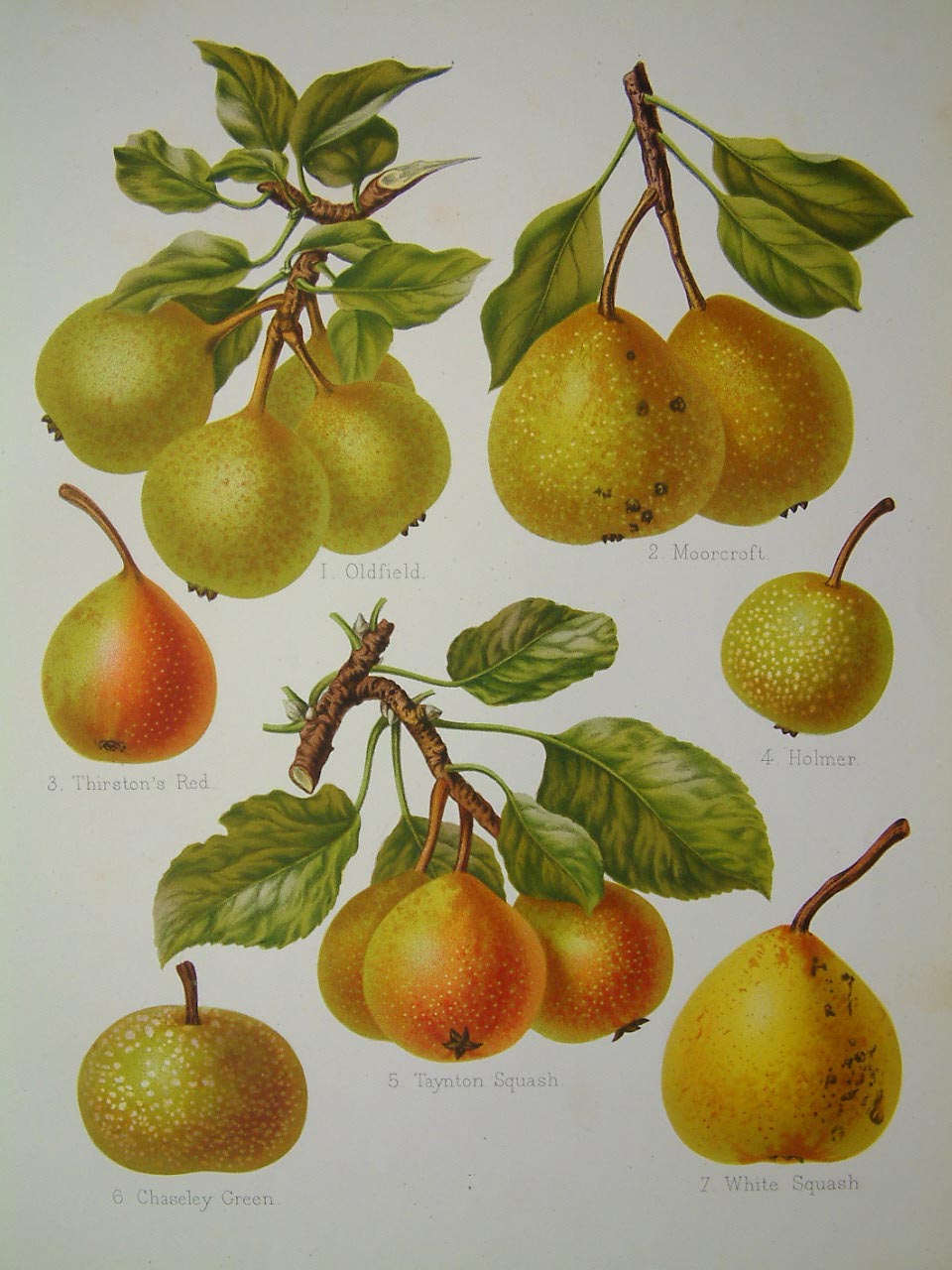 The Woolhope Naturalists’ Field Club was based in Hereford, the capital of a county famous for its apples and pears. The Club’s Pomology Committee was headed by the Reverend Charles Henry Bulmer whose sons in 1887 founded the company which today is now the largest cider-maker in the world. In 1876 the Club considered publishing a ‘Herefordshire Pomona’ and collected 1200 plates for two exhibitions. From these a selection was made for which further descriptions were required. The first of seven parts was published in the autumn of 1878 and following issues were approximately every year until 1885. The artists used all eight autumn seasons and their sunny hours to record 432 varieties of apples and pears. The descriptions were the work of Doctor Robert Hogg (1818-97) with the various introductory material being the work of the overall editor Doctor Henry Graves Bull (c.1818-85). It is considered a vital book in the history of each variety. ‘An Oak Spring Pomona’ (1990) pp. 218-222.