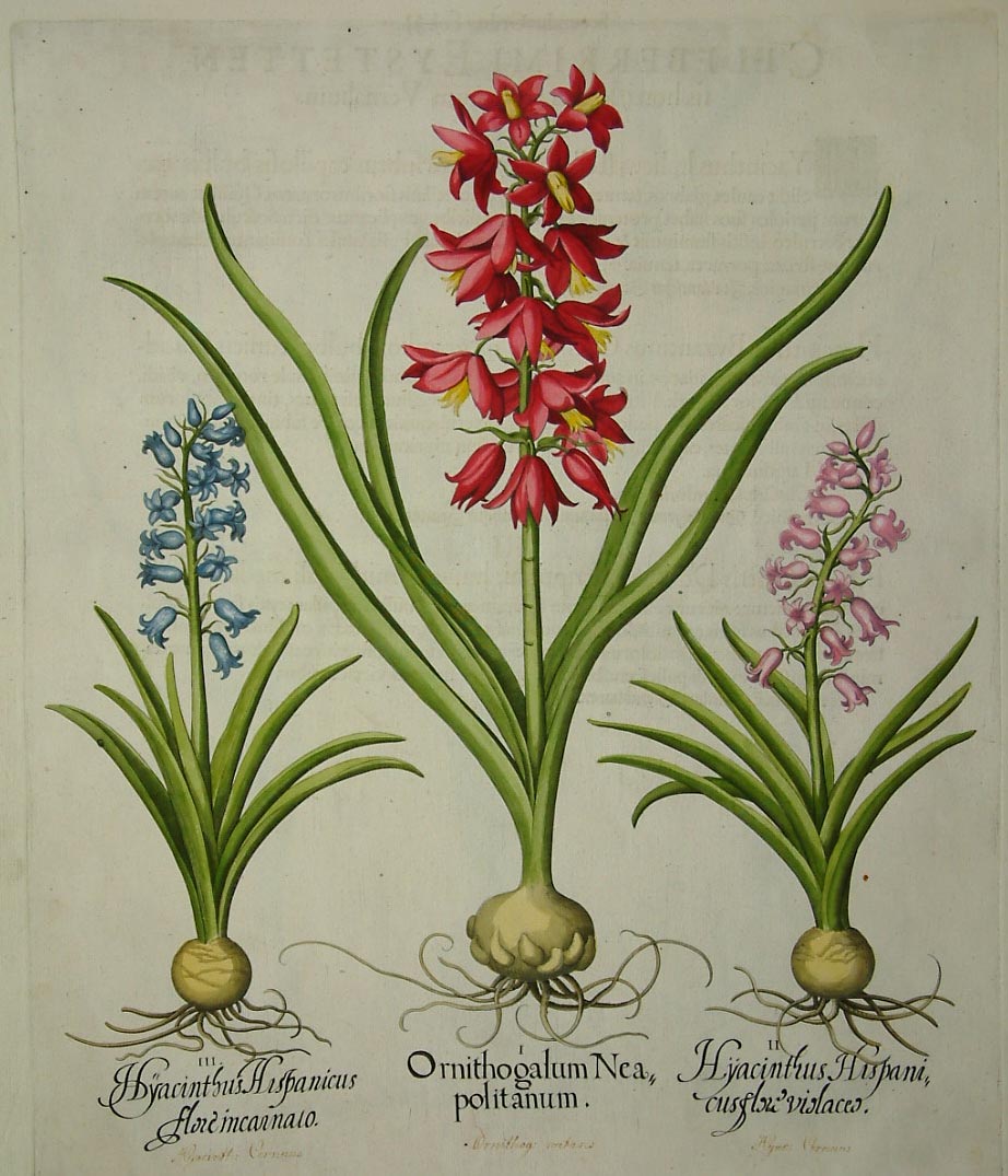 Basilius Besler’s ‘Hortus Eystettensis’ is generally considered to be one of the most important and most beautiful florilegia ever published. It was commissioned by the Prince-Bishop Johann Conrad von Gemmingen in 1606, whose castle overlooked Eichstatt, a town to the south of Nuremberg. The garden was begun by Joachim Camerarius the younger (1534-98) in 1596 and was completed by Basilius Besler, a pharmacist from Nuremberg who also owned a fine garden and a collection of scientific curiosities. Within a few years the gardens of Eichstatt had become one of the most renowned in Europe.