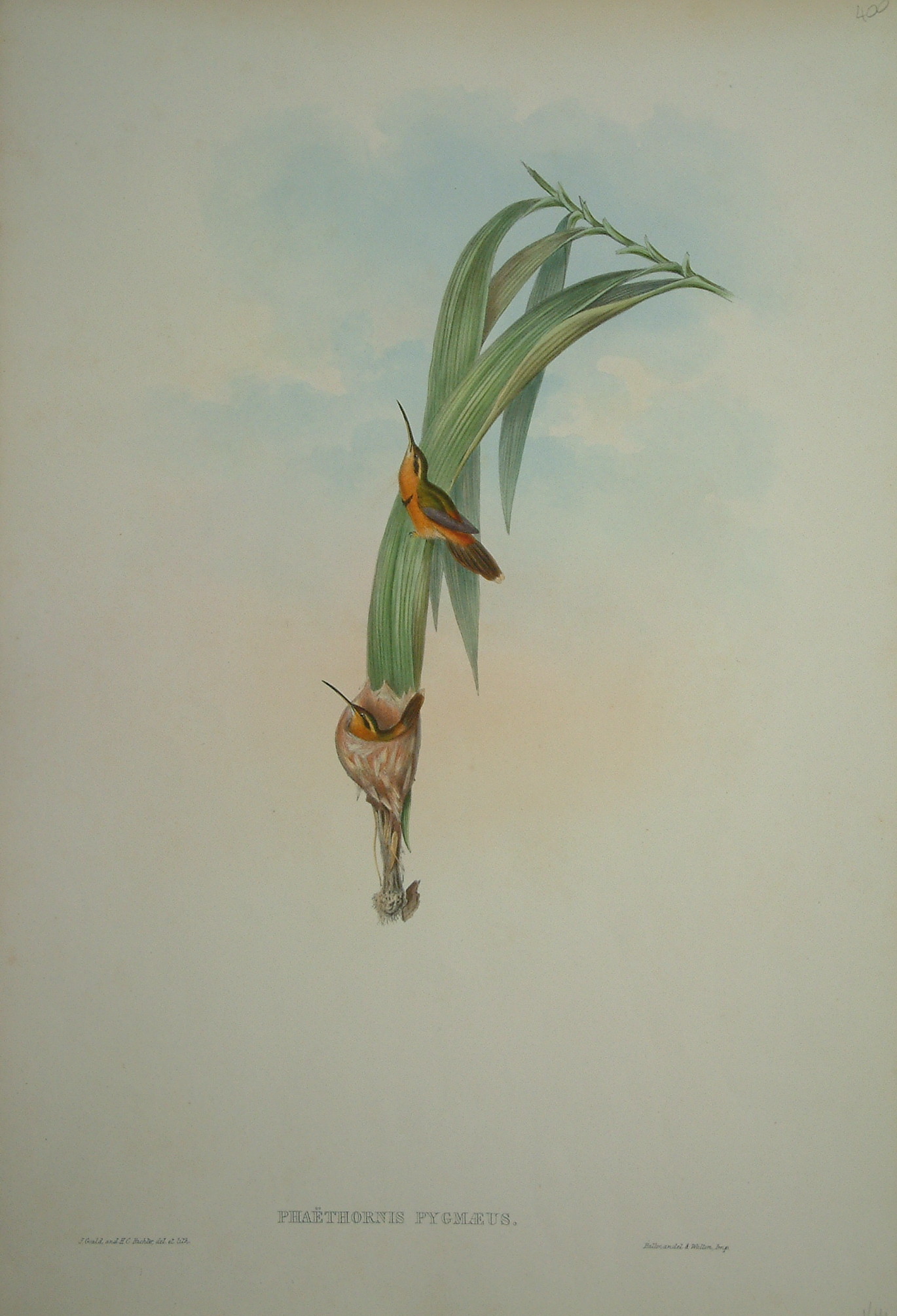 John Gould was born in Lyme, England in 1804, the son of a gardener. With no formal education at the age of 14, he followed his father into the same trade. In his spare time, he learnt how to preserve and mount specimens and traded some of them with the scholars at nearby Eton College. After a short time as a gardener in Yorkshire he settled in London as a taxidermist. In 1827 he received a position at the Zoological Society as curator. His first book on the birds of the Himalayas was published in 1832 when he was just 26 years old. Gould employed the new technology of lithography, his wife Elizabeth being responsible for the lithographic illustrations and the drawings onto stone. He became a Fellow of the Royal Society and Vice President of the Zoological Society. ‘In the field of natural history, the accomplishments of John Gould in his 76 years of life from 1804 to 1881 are truly monumental. No other ornithologist has ever exceeded the number of Gould’s bird discoveries and the magnitude and splendour of his folio publications.’ (Sauer).