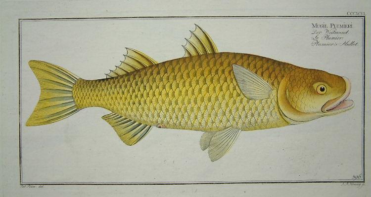 Marcus Eliezer Bloch (1723-99) practised as a physician in Berlin. His professional interest in fishes came late in his life at the age of 56. His first scientific work of note was a treatise on intestinal worms which won him a prize from the Academy of Copenhagen. His monumental work entitled ‘Allgemeine Naturgeschichte der Fische’ is ‘possibly the most beautiful book on fishes ever published’ (Dance). Amongst his supporters was Frederick the Great. According to Wood ‘one of the early and fundamental treatises on general ichthyology by a well-known authority’. Many of the plates were heightened in silver by which means Bloch sought to reproduce the sheen of the fish. Dance (1990) p. 56; Nissen ZBI (1978) 416; Wood (2002) p. 244.