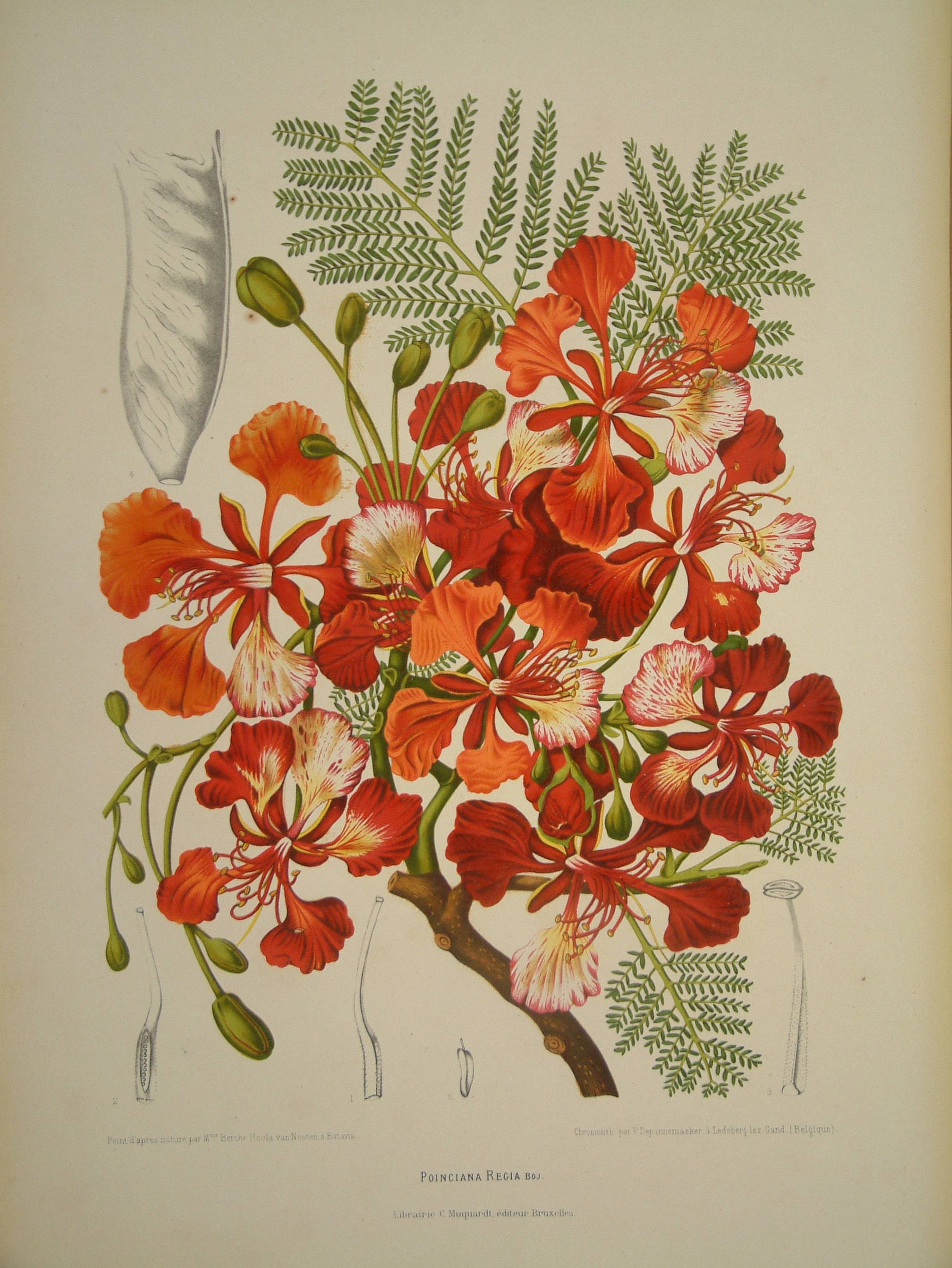c. 18 x 12 inches, chromolithograph of the royal poinciana.
