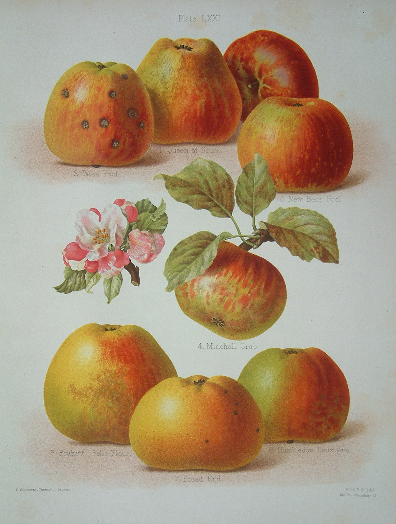 The Woolhope Naturalists’ Field Club was based in Hereford, the capital of a county famous for its apples and pears. The Club’s Pomology Committee was headed by the Reverend Charles Henry Bulmer whose sons in 1887 founded the company which today is now the largest cider-maker in the world. In 1876 the Club considered publishing a ‘Herefordshire Pomona’ and collected 1200 plates for two exhibitions. From these a selection was made for which further descriptions were required. The first of seven parts was published in the autumn of 1878 and following issues were approximately every year until 1885. The artists used all eight autumn seasons and their sunny hours to record 432 varieties of apples and pears. The descriptions were the work of Doctor Robert Hogg (1818-97) with the various introductory material being the work of the overall editor Doctor Henry Graves Bull (c.1818-85). It is considered a vital book in the history of each variety. ‘An Oak Spring Pomona’ (1990) pp. 218-222.