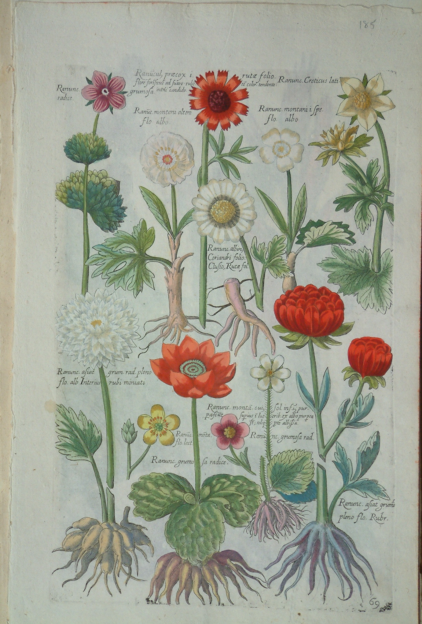 Johann Theodor de Bry (1561-1623) was the son of the printer Theodore de Bry (1528-98). Along with his brother Johann Israel de Bry (1565-1609) he worked for his father learning many aspects of the business. Johann Theodore’s talents lay as an engraver and he was particularly attracted to botany. Some of the inspiration for the ‘Florilegium Novum’ comes from Pierre Vallet’s ‘Jardin du Roy’ published in Paris, 1608. As de Bry states in his preliminary matter ‘Of all things which spring from the earth, flowers are the most beautiful for their grace and dignity’. The ‘Oak Spring Flora’ describes his work thus ‘The unsurpassed artistry for which de Bry was renowned throughout Europe emerges clearly in the plates of this florilegium. Each has been carefully composed, and the confident lines of the engraving, with their fine shading, denote the hand of a true master.’ Arber (1986) p. 244; Hunt (1958) 197; Nissen BBI (1966) 272; ‘Oak Spring Flora’ (1997) pp. 46-52.