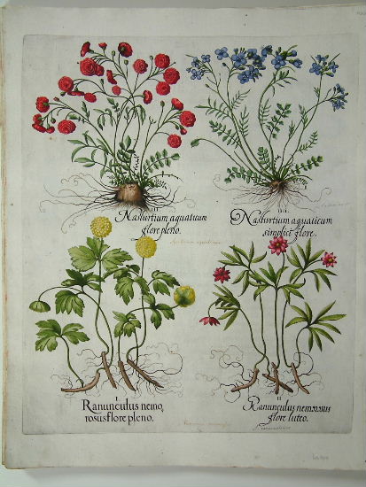 Basilius Besler’s ‘Hortus Eystettensis’ is generally considered to be one of the most important and most beautiful florilegia ever published. It was commissioned by the Prince-Bishop Johann Conrad von Gemmingen in 1606, whose castle overlooked Eichstatt, a town to the south of Nuremberg. The garden was begun by Joachim Camerarius the younger (1534-98) in 1596 and was completed by Basilius Besler, a pharmacist from Nuremberg who also owned a fine garden and a collection of scientific curiosities. Within a few years the gardens of Eichstatt had become one of the most renowned in Europe.