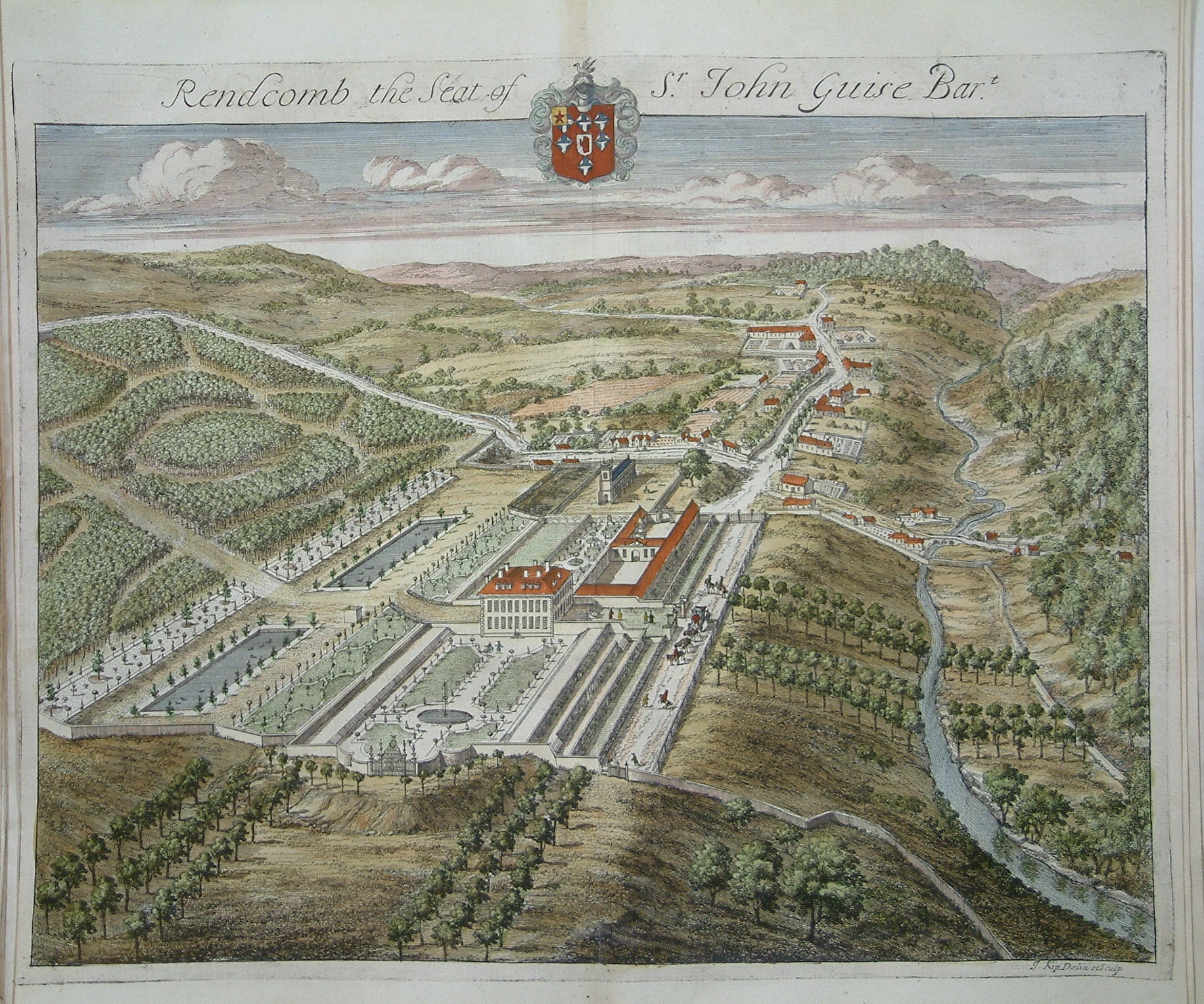 These classic engravings by Joannes Kip (1653-1722) illustrate Sir Robert Atkyns’ ‘Present State of Gloucestershire’ published in 1712. Atkyns (1647-1710) was a topographer and the son of the Chief Baron of the Exchequer. He was elected an MP for Gloucester in 1684. The superb birds-eye views are of country seats and estates and have become synonymous with the English country house. The book was published posthumously and nearly didn’t make it as many copies were destroyed in a fire at the printers in White Friars on 30 January 1712. Upcott (1968) I, p. 246.