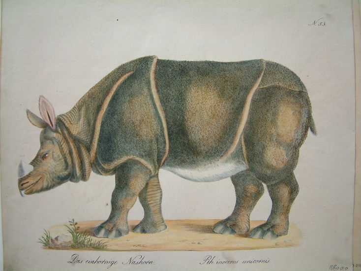 14 x 16.5 inches, original colour, lithographs. Plate 53. Rhinoceros.