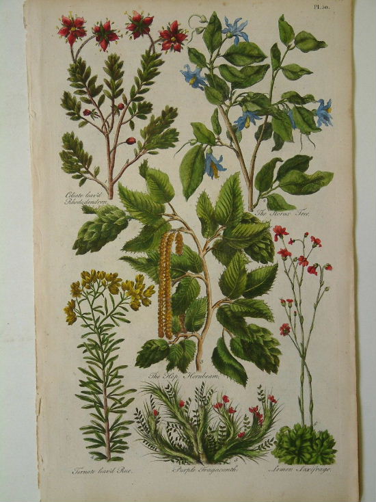 John Hill (1716-75) was trained as a pharmacist and then became a gardener and curator of dried plants for the Duke of Richmond. He left to become an actor before opening up a pharmacy in Covent Garden. He then translated a treatise on mineralogy which finally brought him a degree of financial security and a calling. He became a writer of many subjects, his most impressive being the twenty-six volume ‘Vegetable System’ for which he personally designed and etched 1,600 plates. Hill also worked on the ground breaking for Kew Gardens and as a gardener at Kensington Palace. Hill is noted for introducing the Linnaean system of botanical nomenclature to England. This is from the ‘Eden, or a Compleat Body of Gardening’ which is arranged as a calendar week by week beginning at the end of August. Dunthorne (1938) 129; Henery (1975) no. 805; Hunt (1958) 559; Nissen ZBI (1978) 880; ‘Oak Spring Flora’ (1997) pp. 197-201; Sitwell & Blunt (1956) p. 59.