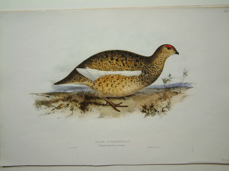14 x 21 inches, original hand coloured lithograph. Plate 37, a gamebird by Edward Lear.
