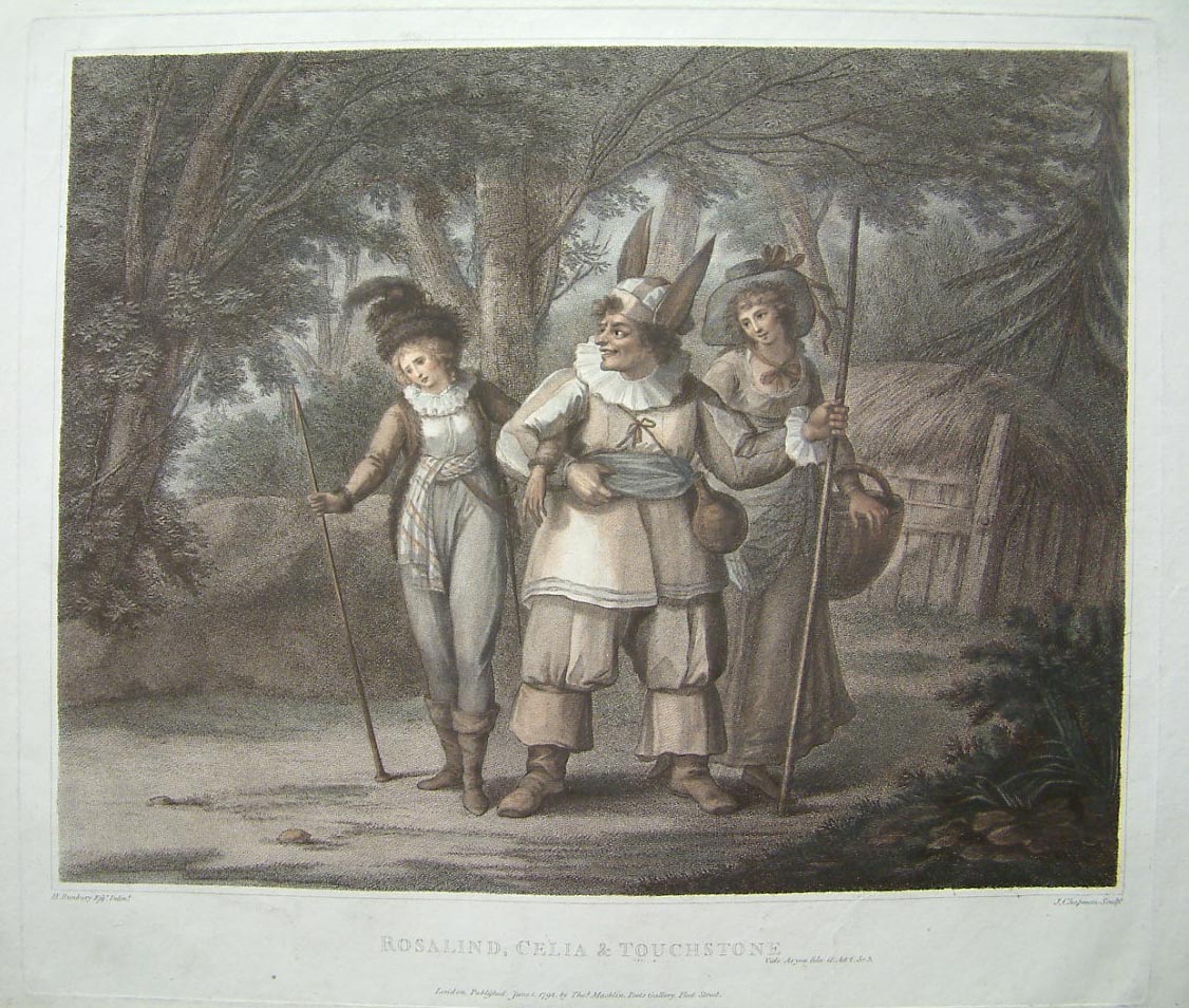 Rosalind, Celia & Touchtone. From ‘As you like it’ Act 2 Scene 3. (decorative print)