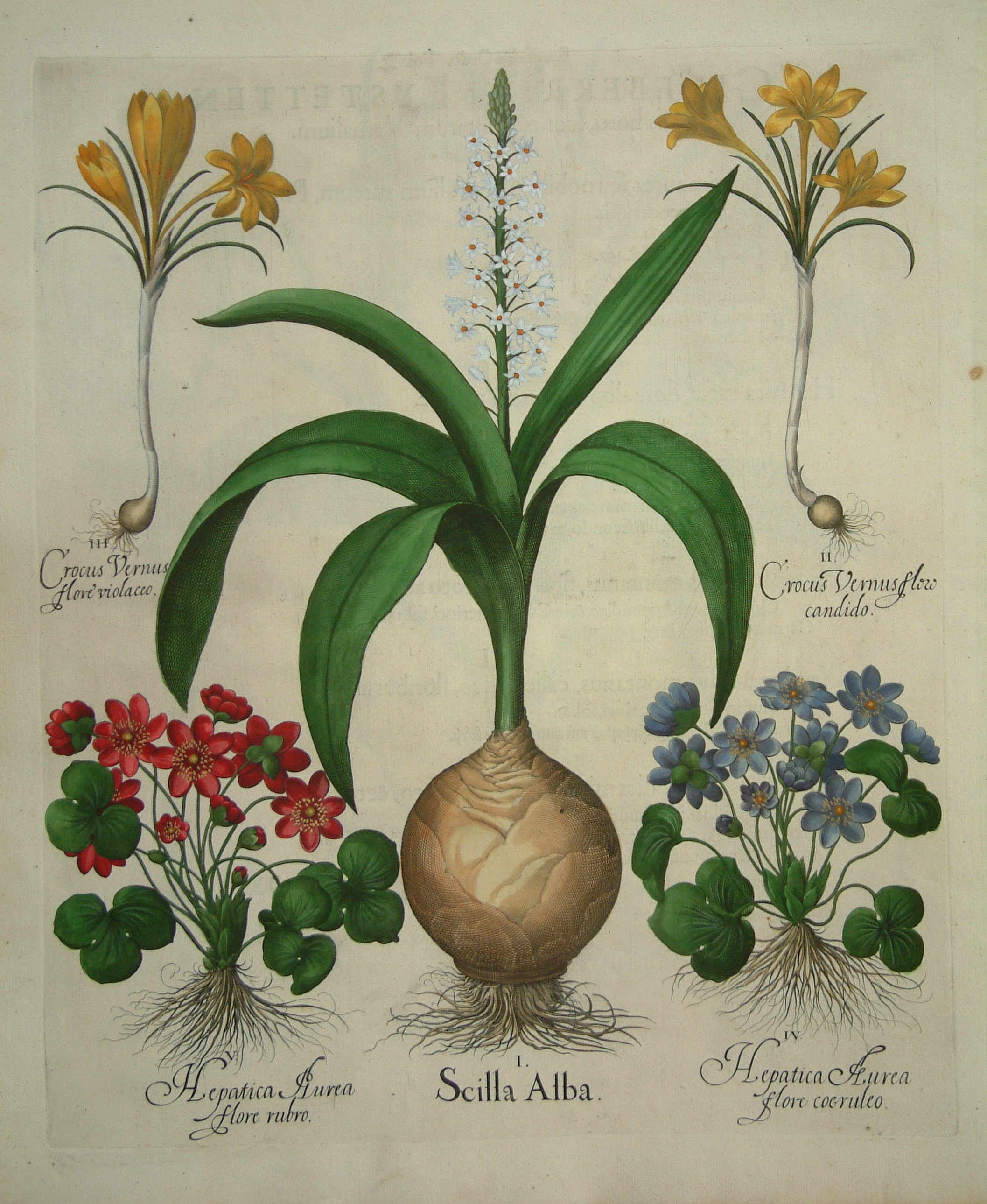 Basilius Besler’s ‘Hortus Eystettensis’ is generally considered to be one of the most important and most beautiful florilegia ever published. It was commissioned by the Prince-Bishop Johann Conrad von Gemmingen in 1606, whose castle overlooked Eichstatt, a town to the south of Nuremberg. The garden was begun by Joachim Camerarius the younger (1534-98) in 1596 and was completed by Basilius Besler, a pharmacist from Nuremberg who also owned a fine garden and a collection of scientific curiosities. Within a few years the gardens of Eichstatt had become one of the most renowned in Europe.