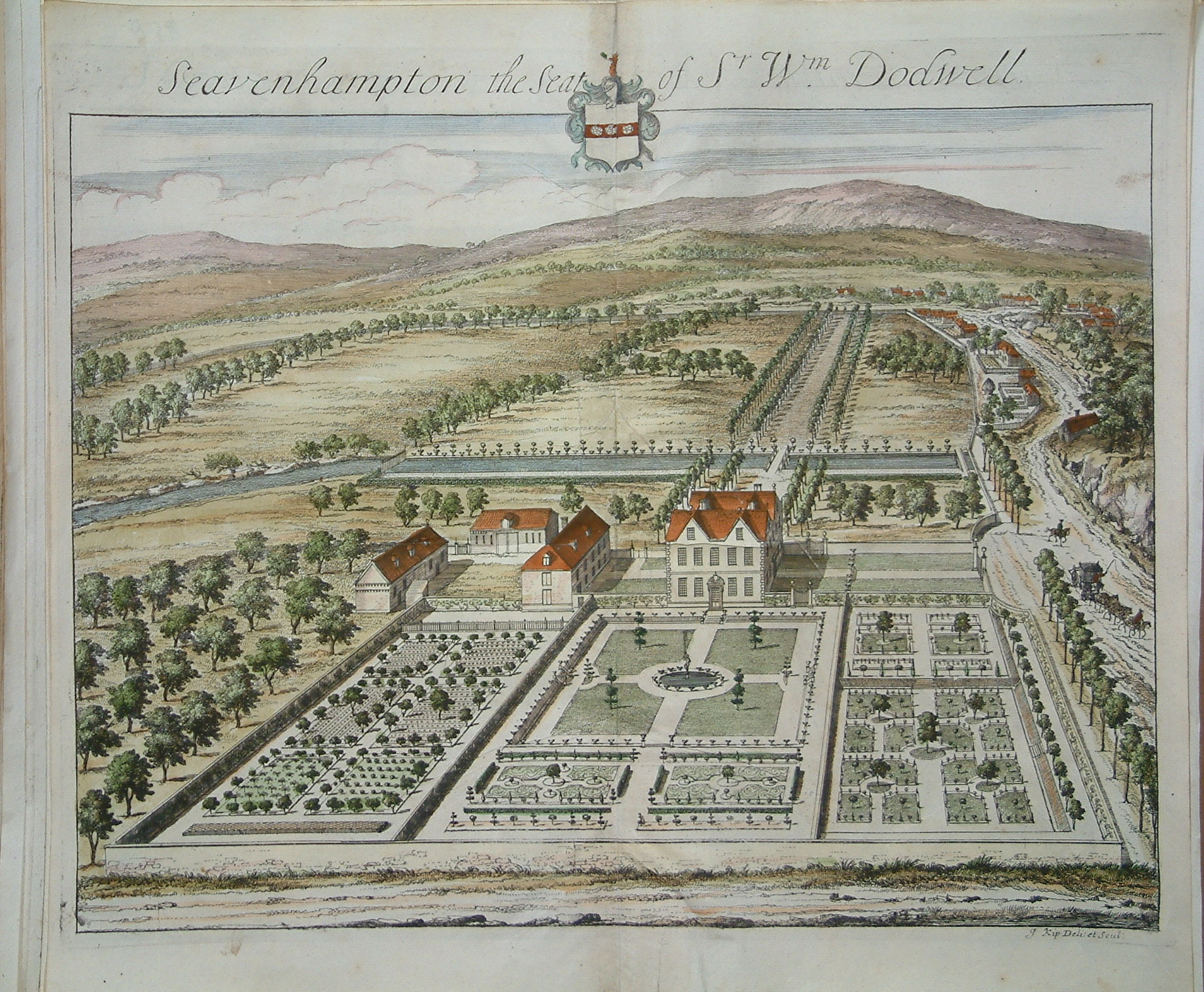 These classic engravings by Joannes Kip (1653-1722) illustrate Sir Robert Atkyns’ ‘Present State of Gloucestershire’ published in 1712. Atkyns (1647-1710) was a topographer and the son of the Chief Baron of the Exchequer. He was elected an MP for Gloucester in 1684. The superb birds-eye views are of country seats and estates and have become synonymous with the English country house. The book was published posthumously and nearly didn’t make it as many copies were destroyed in a fire at the printers in White Friars on 30 January 1712. Upcott (1968) I, p. 246.