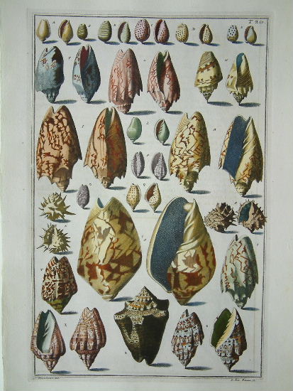 Niccolo Gualtieri (1688-1744) was born in Florence and after a brief period studying in Pisa returned to the city. Here he became a physician, eventually to Cosimo de Medici. His interest in natural history led him to create his own collection. While cabinets of shells were fashionable in court circles, Gualtieri’s collections were particularly impressive and he produced the magnificent ‘Index Testarum Conchyliorum’ in 1742 illustrating hundreds of shells from his own collection. Many of these had been sent by Georg Eberhard Rumphius (1627-1702). The plates were engraved by Giuseppe Menabuoni and Antonio Pazzi. He was also a professor at the University of Pisa. His collections are now in the Museo Storia Naturale di Pisa. Dance (1966) ‘Shell Collecting’ p. 57; Dance (1981) p. 74; Nissen ZBI (1978) 1736.