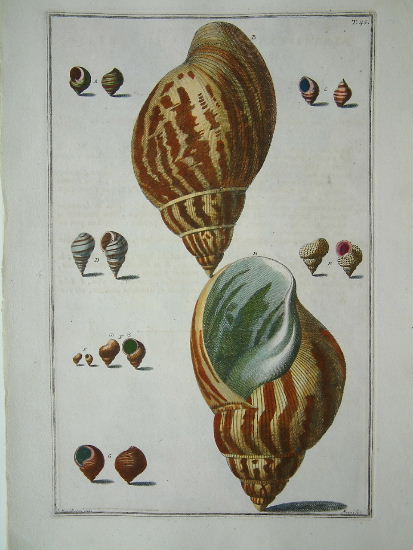 Niccolo Gualtieri (1688-1744) was born in Florence and after a brief period studying in Pisa returned to the city. Here he became a physician, eventually to Cosimo de Medici. His interest in natural history led him to create his own collection. While cabinets of shells were fashionable in court circles, Gualtieri’s collections were particularly impressive and he produced the magnificent ‘Index Testarum Conchyliorum’ in 1742 illustrating hundreds of shells from his own collection. Many of these had been sent by Georg Eberhard Rumphius (1627-1702). The plates were engraved by Giuseppe Menabuoni and Antonio Pazzi. He was also a professor at the University of Pisa. His collections are now in the Museo Storia Naturale di Pisa. Dance (1966) ‘Shell Collecting’ p. 57; Dance (1981) p. 74; Nissen ZBI (1978) 1736.