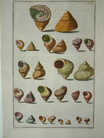 Niccolo Gualtieri (1688-1744) was born in Florence and after a brief period studying in Pisa returned to the city. Here he became a physician, eventually to Cosimo de Medici. His interest in natural history led him to create his own collection. While cabinets of shells were fashionable in court circles, Gualtieri’s collections were particularly impressive and he produced the magnificent ‘Index Testarum Conchyliorum’ in 1742 illustrating hundreds of shells from his own collection. Many of these had been sent by Georg Eberhard Rumphius (1627-1702). The plates were engraved by Giuseppe Menabuoni and Antonio Pazzi. He was also a professor at the University of Pisa. His collections are now in the Museo Storia Naturale di Pisa. Dance (1966) ‘Shell Collecting’ p. 57; Dance (1981) p. 74; Nissen ZBI (1978) 1736.