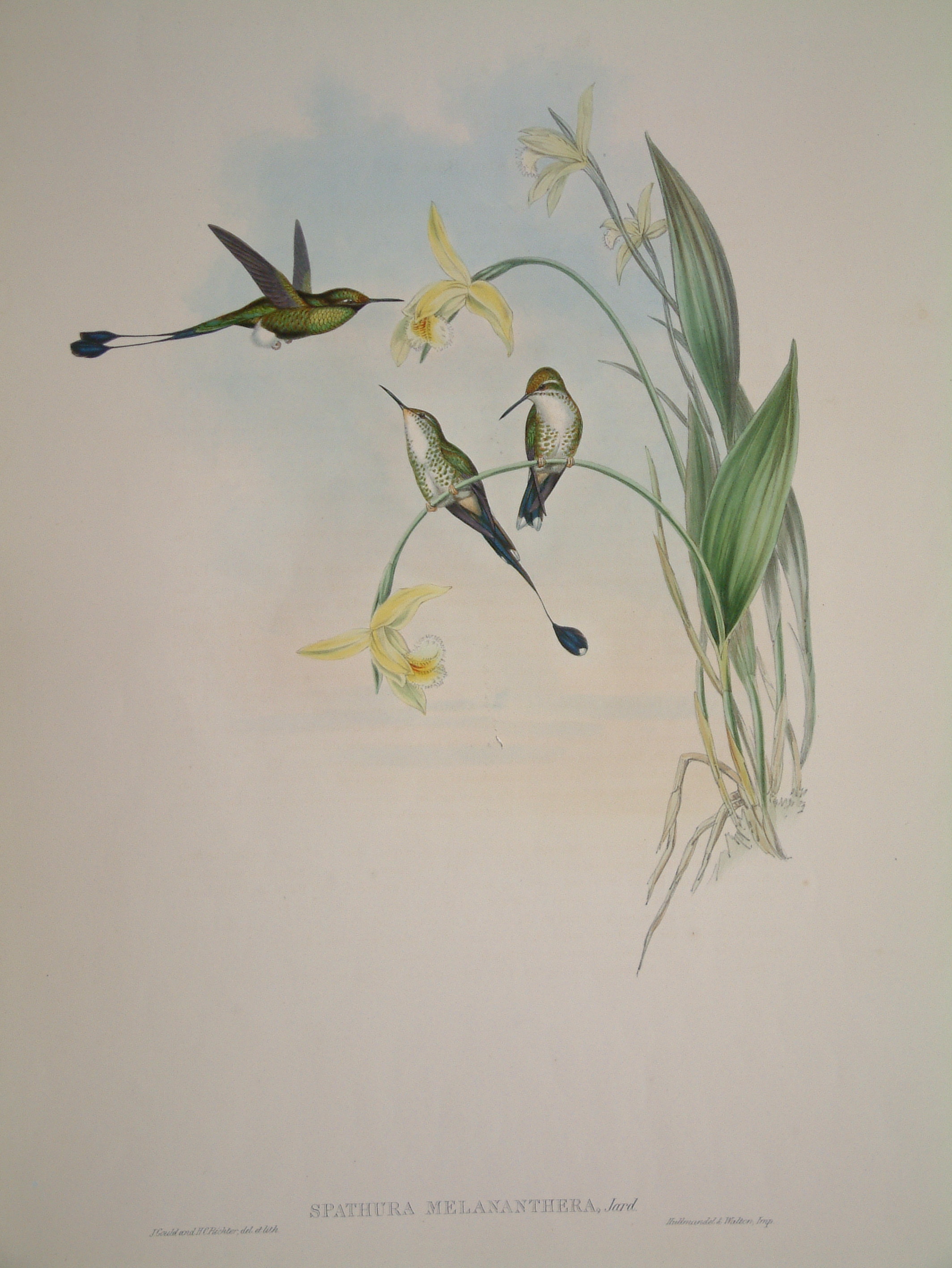 John Gould was born in Lyme, England in 1804, the son of a gardener. With no formal education at the age of 14, he followed his father into the same trade. In his spare time, he learnt how to preserve and mount specimens and traded some of them with the scholars at nearby Eton College. After a short time as a gardener in Yorkshire he settled in London as a taxidermist. In 1827 he received a position at the Zoological Society as curator. His first book on the birds of the Himalayas was published in 1832 when he was just 26 years old. Gould employed the new technology of lithography, his wife Elizabeth being responsible for the lithographic illustrations and the drawings onto stone. He became a Fellow of the Royal Society and Vice President of the Zoological Society. ‘In the field of natural history, the accomplishments of John Gould in his 76 years of life from 1804 to 1881 are truly monumental. No other ornithologist has ever exceeded the number of Gould’s bird discoveries and the magnitude and splendour of his folio publications.’ (Sauer).