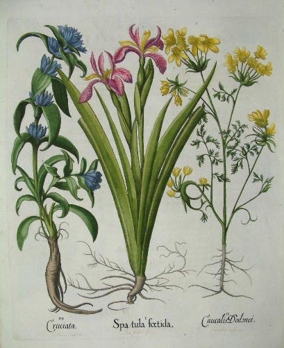 Basilius Besler’s ‘Hortus Eystettensis’ is generally considered to be one of the most important and most beautiful florilegia ever published. It was commissioned by the Prince-Bishop Johann Conrad von Gemmingen in 1606, whose castle overlooked Eichstatt, a town to the south of Nuremberg. The garden was begun by Joachim Camerarius the younger (1534-98) in 1596 and was completed by Basilius Besler, a pharmacist from Nuremberg who also owned a fine garden and a collection of scientific curiosities. Within a few years the gardens of Eichstatt had become one of the most renowned in Europe.