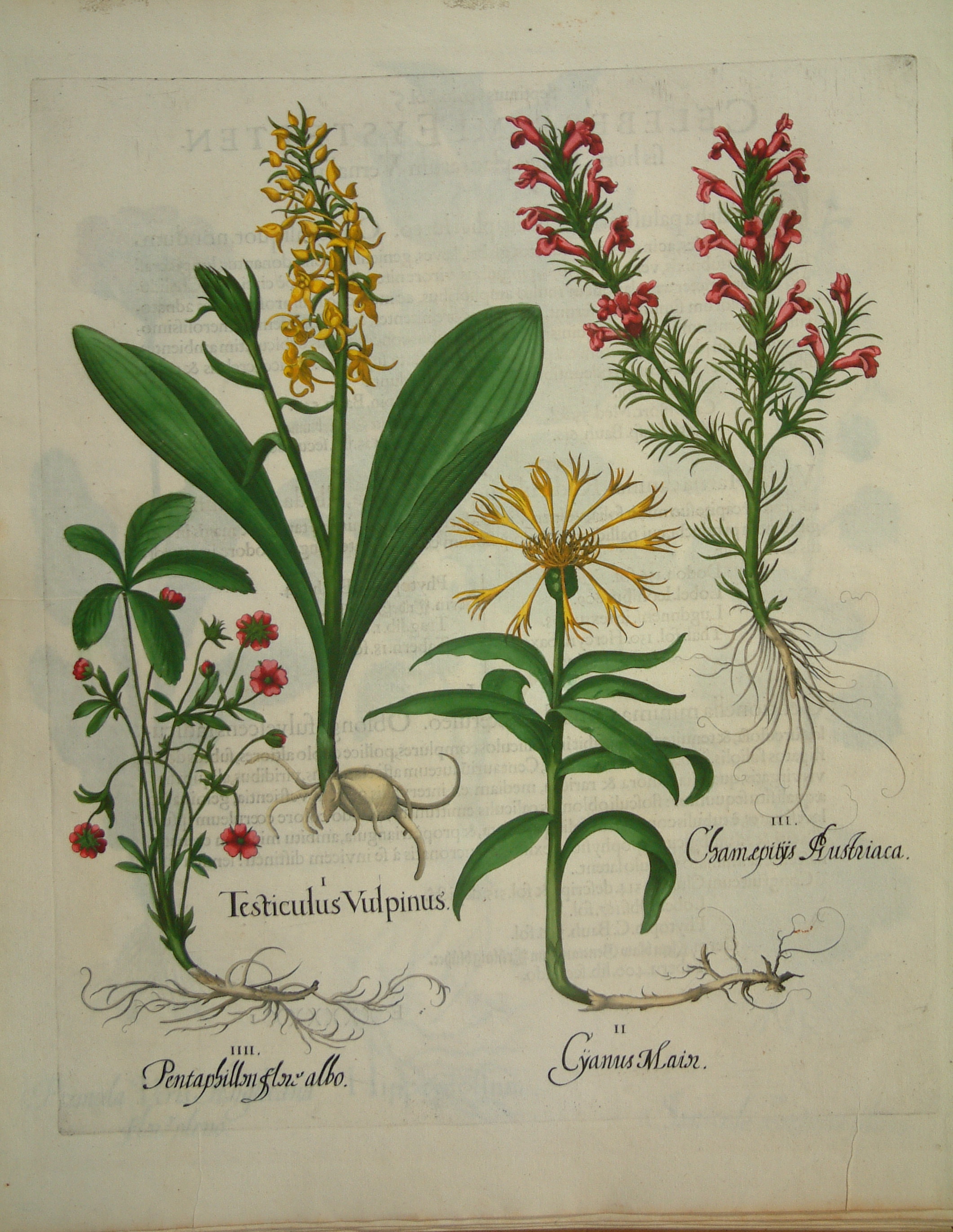 Basilius Besler’s ‘Hortus Eystettensis’ is generally considered to be one of the most important and most beautiful florilegia ever published. It was commissioned by the Prince-Bishop Johann Conrad von Gemmingen in 1606, whose castle overlooked Eichstatt, a town to the south of Nuremberg. The garden was begun by Joachim Camerarius the younger (1534-98) in 1596 and was completed by Basilius Besler, a pharmacist from Nuremberg who also owned a fine garden and a collection of scientific curiosities. Within a few years the gardens of Eichstatt had become one of the most renowned in Europe.