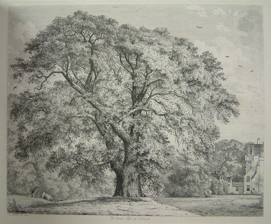 Jacob George Strutt (1784-1867) was a landscape etcher and painter in the style of John Constable (1776-1837). Born in Colchester, one of eight children. He was not trained as a botanical artist so he excelled more at forest scenes than depicting tree anatomy. He may well have studied with Constable. He was a capable engraver also. From 1824 to 1831 he exhibited his work on forest scenery publishing the ‘Sylva Britannica; or, Portraits of Forest Trees distinguished for their Antiquity, Magnitude or Beauty’ in 1822-[26]. About 1831 he moved to Lausanne, eventually settling in Rome to work on the Italian landscape. He returned to London in 1851. Nissen BBI (1996) 1907; ODNB; not in De Belder, ‘Oak Spring Sylva’ or Plesch.