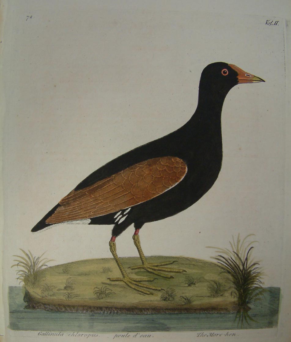 Eleazar Albin’s ‘Natural History of Birds’ is the first colour plate bird book to be printed. Mark Catesby’s ‘Natural History’ began publication in the same year but that work was not completed until 1747 and it was not purely a bird book. Little is known about Albin; he was a teacher of watercolour and drawing. He admits that he was drawn to natural history by the rich and vibrant colours found in birds, plants and insects. Anker (1979) 4; Fine Bird Books (1990) 54; Nissen (1976) IVB 14.