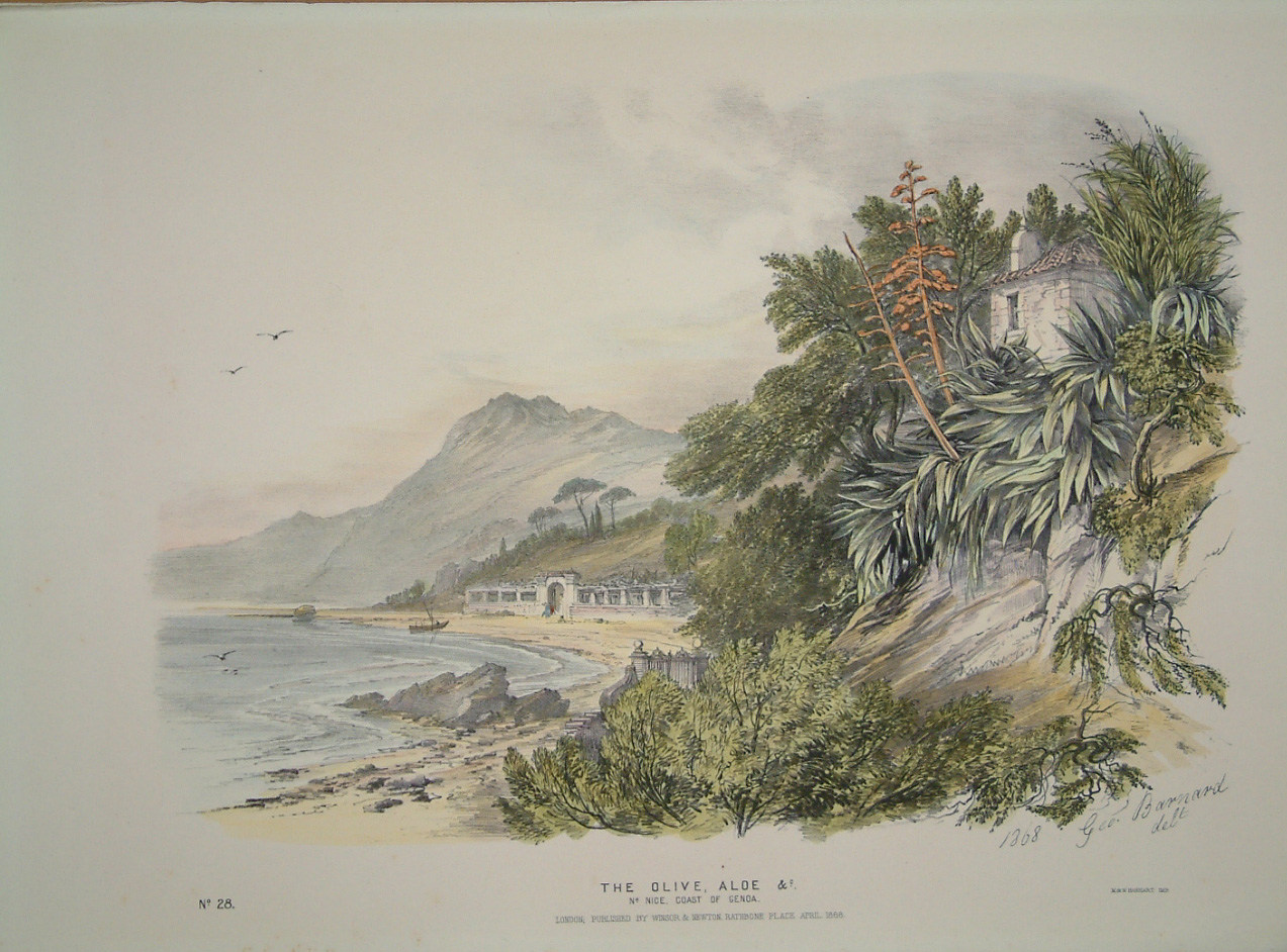 George Barnard was a Professor of Drawing at Rugby School. He is best known for works on landscape drawing and painting. ‘A New Work Consisting of Studies of Trees from Nature’ was published in 1868. The trees are depicted in British and continental European settings. Examples include Interlaken, Zermatt which depicts the Matterhorn in the background, Fontainbleau and others along the coast of Genoa. A very rare work. Not listed in any of the main references.