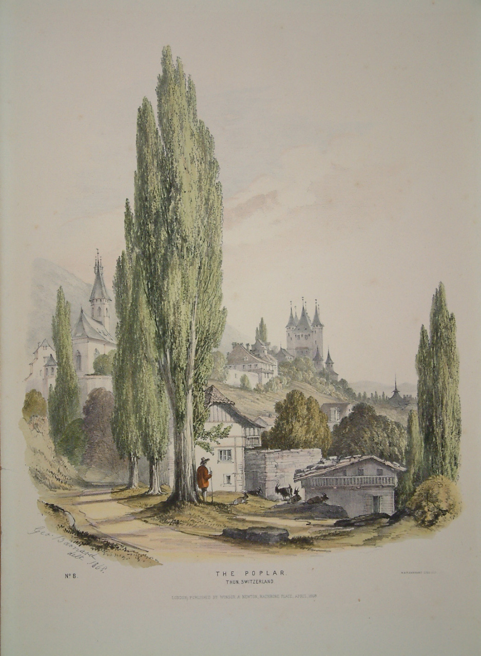 George Barnard was a Professor of Drawing at Rugby School. He is best known for works on landscape drawing and painting. ‘A New Work Consisting of Studies of Trees from Nature’ was published in 1868. The trees are depicted in British and continental European settings. Examples include Interlaken, Zermatt which depicts the Matterhorn in the background, Fontainbleau and others along the coast of Genoa. A very rare work. Not listed in any of the main references.