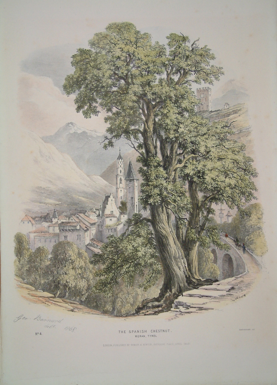 George Barnard was a Professor of Drawing at Rugby School. He is best known for works on landscape drawing and painting. ‘A New Work Consisting of Studies of Trees from Nature’ was published in 1868. The trees are depicted in British and continental European settings. Examples include Interlaken, Zermatt which depicts the Matterhorn in the background, Fontainbleau and others along the coast of Genoa. A very rare work. Not listed in any of the main references.