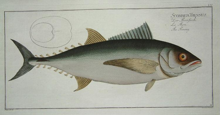 Marcus Eliezer Bloch (1723-99) practised as a physician in Berlin. His professional interest in fishes came late in his life at the age of 56. His first scientific work of note was a treatise on intestinal worms which won him a prize from the Academy of Copenhagen. His monumental work entitled ‘Allgemeine Naturgeschichte der Fische’ is ‘possibly the most beautiful book on fishes ever published’ (Dance). Amongst his supporters was Frederick the Great. According to Wood ‘one of the early and fundamental treatises on general ichthyology by a well-known authority’. Many of the plates were heightened in silver by which means Bloch sought to reproduce the sheen of the fish. Dance (1990) p. 56; Nissen ZBI (1978) 416; Wood (2002) p. 244.
