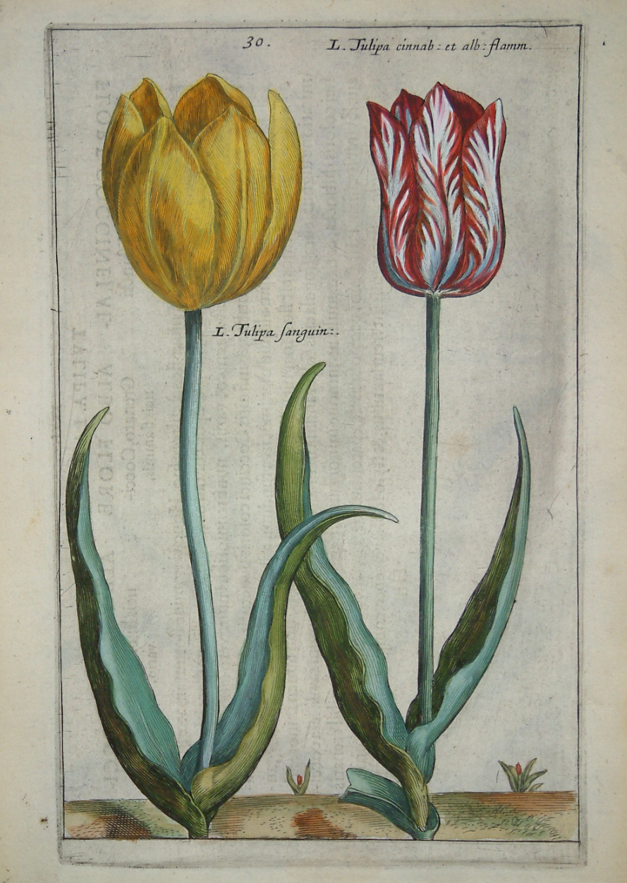 The ‘Hortus Floridus’ by Crispijn van de Passe (1594/5-1670) was ‘without question the most popular florilegium ever published’ (Oak Spring Flora). Although van de Passe produced a technically accurate work which became an indispensable reference work his artistic talents were also expressed well. Many of his plates were unique for the period in displaying the plants in their natural surroundings rather than floating on a blank page. He is also noted for introducing insect life and even the odd animal to his images. Van de Passe was the son of an engraver of the same name. Ref. Hunt (1958) 199; Nissen BBI (1966) 1494; ‘Oak Spring Flora’ no. 12.