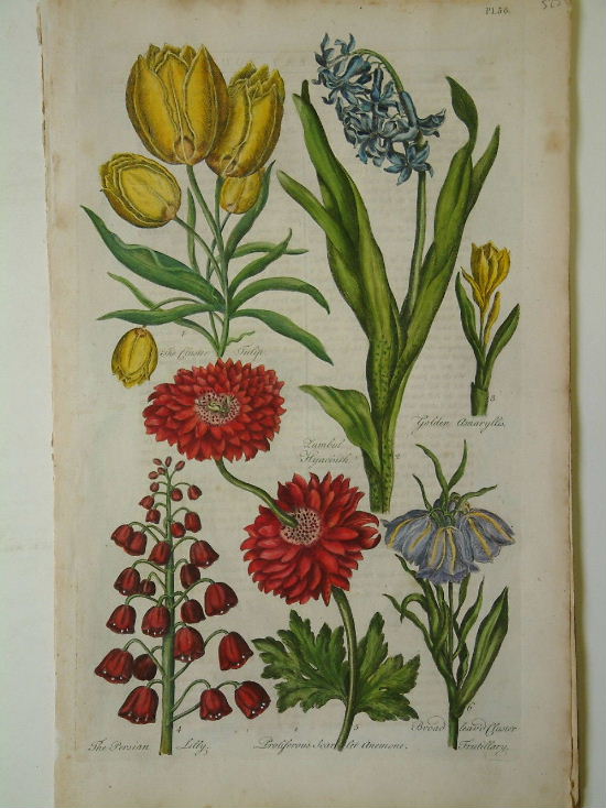 John Hill (1716-75) was trained as a pharmacist and then became a gardener and curator of dried plants for the Duke of Richmond. He left to become an actor before opening up a pharmacy in Covent Garden. He then translated a treatise on mineralogy which finally brought him a degree of financial security and a calling. He became a writer of many subjects, his most impressive being the twenty-six volume ‘Vegetable System’ for which he personally designed and etched 1,600 plates. Hill also worked on the ground breaking for Kew Gardens and as a gardener at Kensington Palace. Hill is noted for introducing the Linnaean system of botanical nomenclature to England. This is from the ‘Eden, or a Compleat Body of Gardening’ which is arranged as a calendar week by week beginning at the end of August. Dunthorne (1938) 129; Henery (1975) no. 805; Hunt (1958) 559; Nissen ZBI (1978) 880; ‘Oak Spring Flora’ (1997) pp. 197-201; Sitwell & Blunt (1956) p. 59.