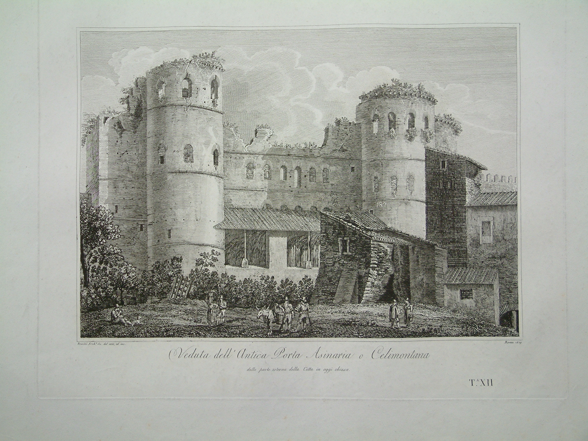 Luigi Rossini (1790-1857) was a native of Ravenna but soon moved to Bologna where he became an assistant to Antonio Basoli at 18 years old. At 24 he moved to Rome he put to use his study of architecture. Being a great admirer of Piranesi he turned to the art of etching and emulated him as much as possible. ‘Le Antichita Romane’ was first published in 1823. Berlin Kat. 1916.