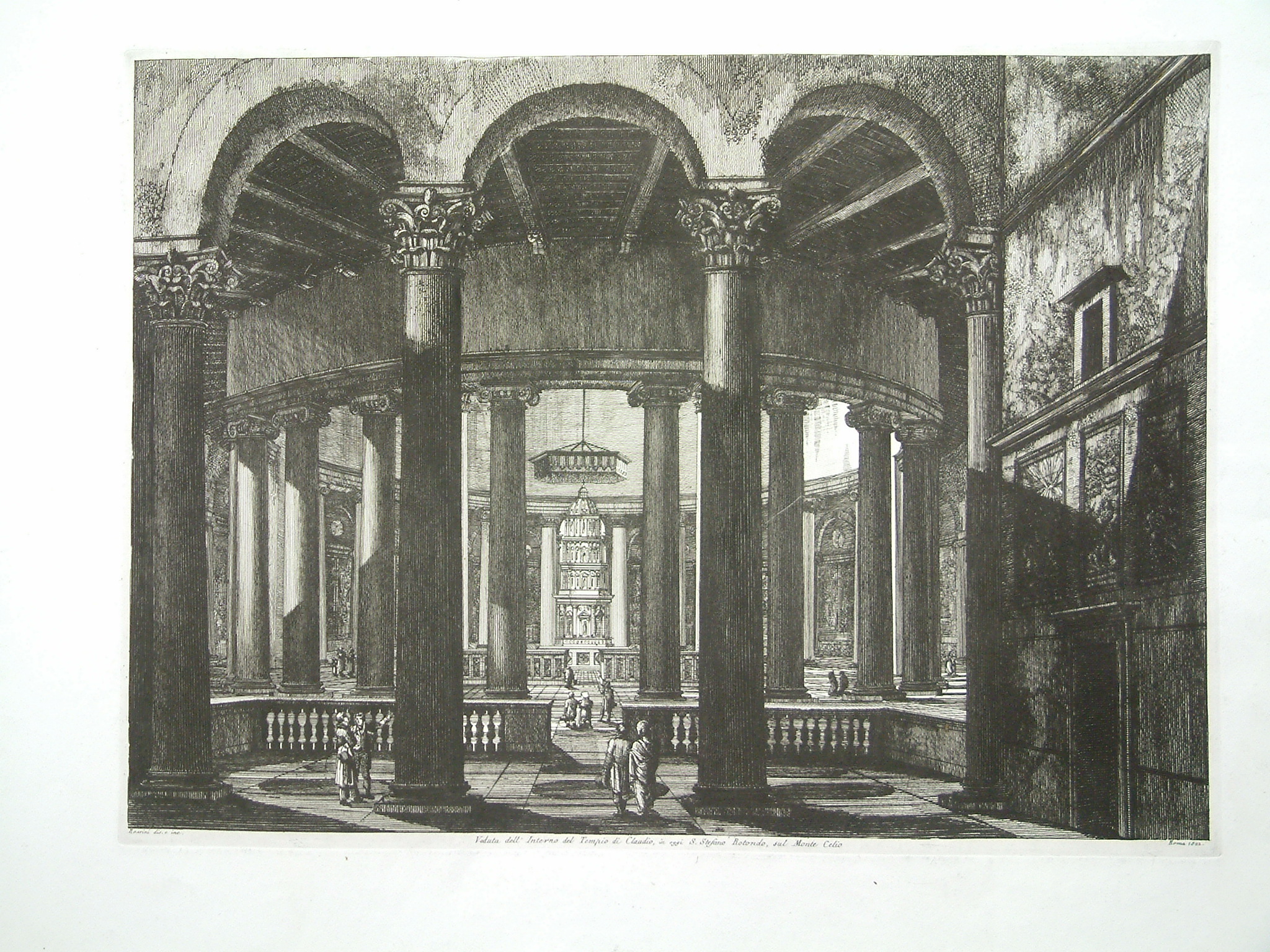 Luigi Rossini (1790-1857) was a native of Ravenna but soon moved to Bologna where he became an assistant to Antonio Basoli at 18 years old. At 24 he moved to Rome he put to use his study of architecture. Being a great admirer of Piranesi he turned to the art of etching and emulated him as much as possible. ‘Le Antichita Romane’ was first published in 1823. Berlin Kat. 1916.