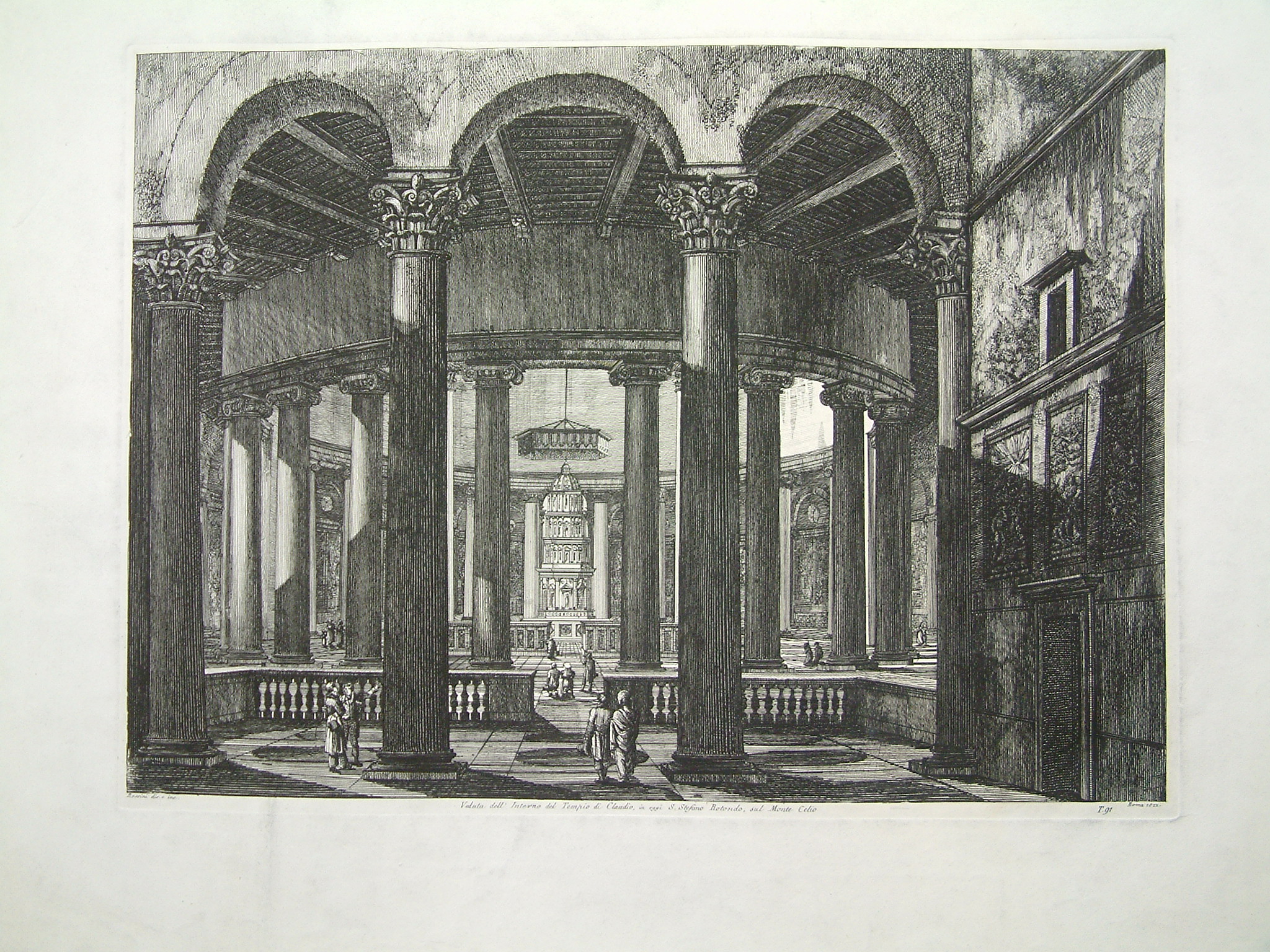 Luigi Rossini (1790-1857) was a native of Ravenna but soon moved to Bologna where he became an assistant to Antonio Basoli at 18 years old. At 24 he moved to Rome he put to use his study of architecture. Being a great admirer of Piranesi he turned to the art of etching and emulated him as much as possible. ‘Le Antichita Romane’ was first published in 1823. Berlin Kat. 1916.